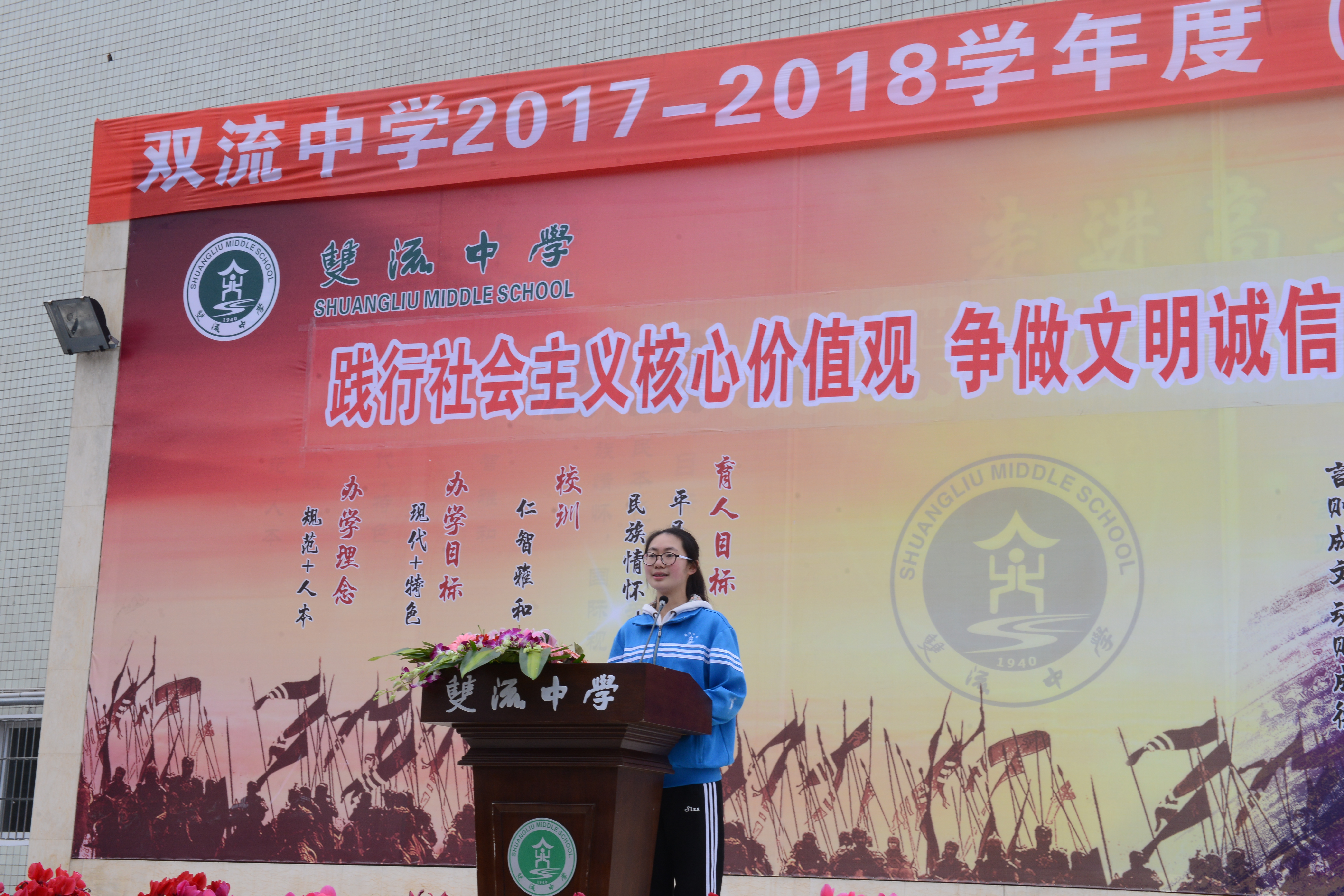 雙流中學(xué)2017—2018學(xué)年下學(xué)期開(kāi)學(xué)典禮在燦爛春光中圓滿(mǎn)結(jié)束,在全體教職員工的不懈努力之下,雙流中學(xué)定能不負(fù)眾望,穩(wěn)步前進(jìn)。