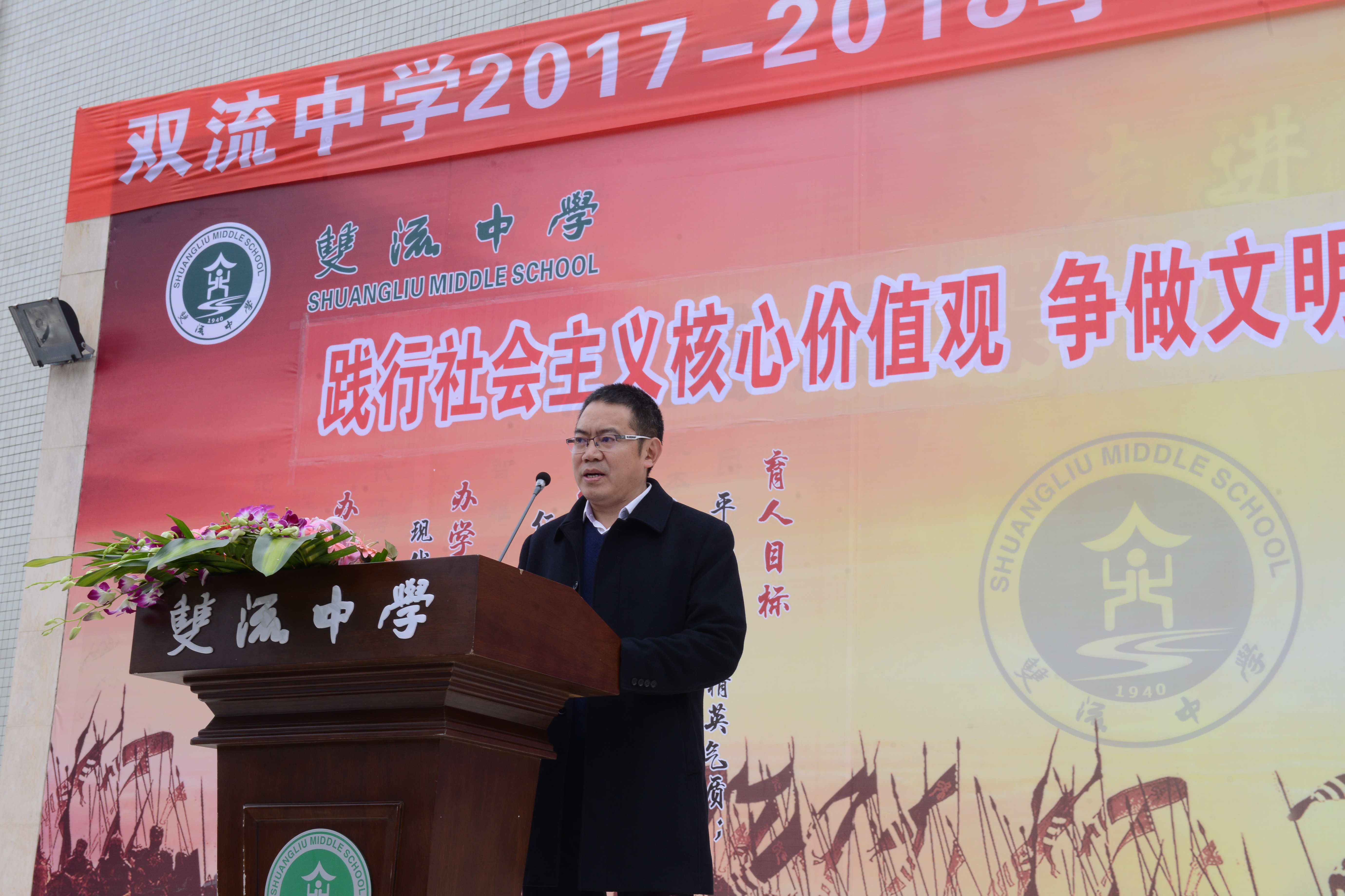 雙流中學(xué)全面主持校務(wù)工作的龍清明副校長(zhǎng)發(fā)言