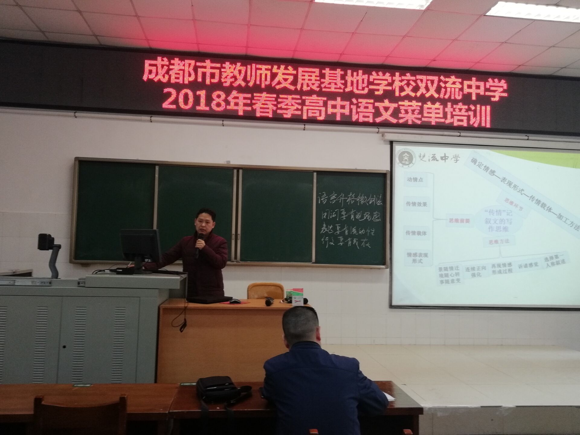 2018年3月22日,雙流中學(xué)舉辦了新學(xué)期的第一次高中語文菜單培訓(xùn)活動(dòng),高一年級(jí)的王澤菊老師和劉小芳老師分別上了精彩而富有啟發(fā)性的寫作展示課,陳劍泉老師就兩位老師的展示課做了精要的點(diǎn)評(píng)并以此為切入點(diǎn)進(jìn)行有關(guān)作文教學(xué)的報(bào)告。雙流中學(xué)全體語文教師參加了此次菜單培訓(xùn)活動(dòng)。