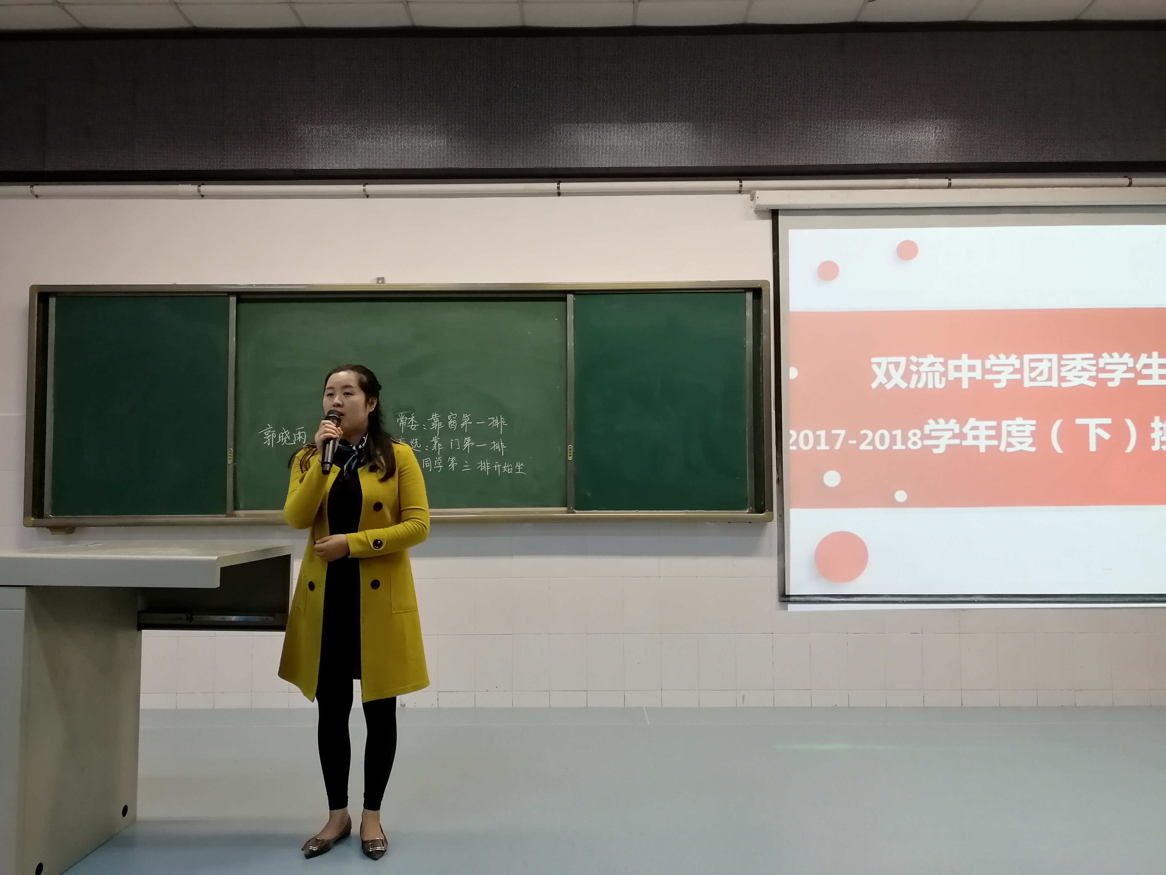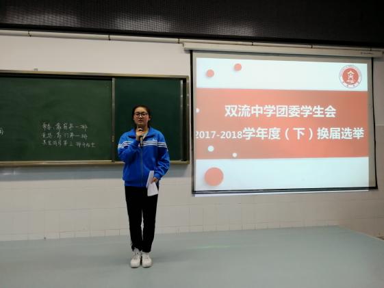2018年3月30日晚上7:20,四川省雙流中學(xué)學(xué)生會(huì)在多功能廳隆重舉行了2017-2018換屆選舉大會(huì),選出了新一屆學(xué)生會(huì)干部,其中學(xué)生會(huì)主席一名、學(xué)生會(huì)副主席三名、辦公室主任一名、團(tuán)委副書(shū)記一名。雙流中學(xué)團(tuán)委副書(shū)記汪思杰老師偕同宋淑蘭老師、鄒川老師,新老一屆全體學(xué)生會(huì)成員以及高一、高二各班學(xué)生代表參加此次大會(huì)。