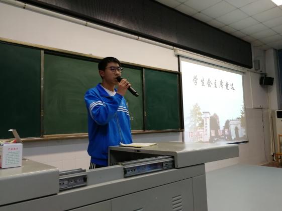 其后,辦公室主任候選人陳致遠(yuǎn)和團(tuán)支部副書(shū)記候選人郭曉雨,本著挑戰(zhàn)自我、服務(wù)同學(xué)、協(xié)助學(xué)校的目的,在說(shuō)明自己工作設(shè)想的同時(shí),表達(dá)了為學(xué)生會(huì)構(gòu)建更科學(xué)的管理體系和順利完成工作的決心。