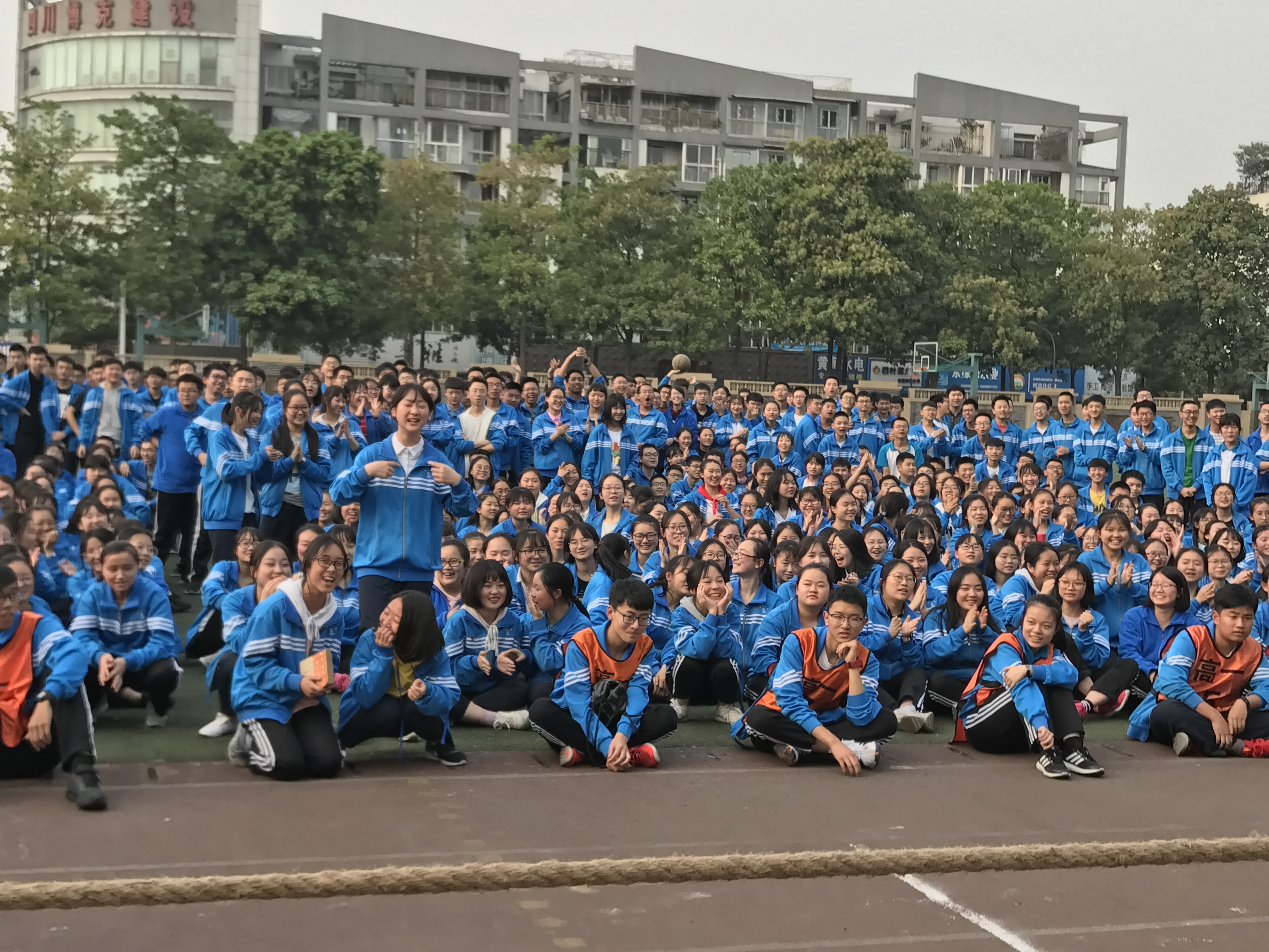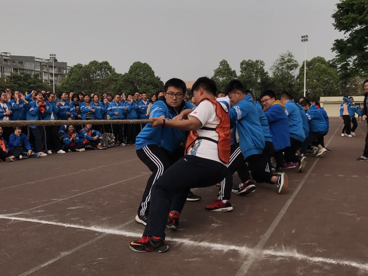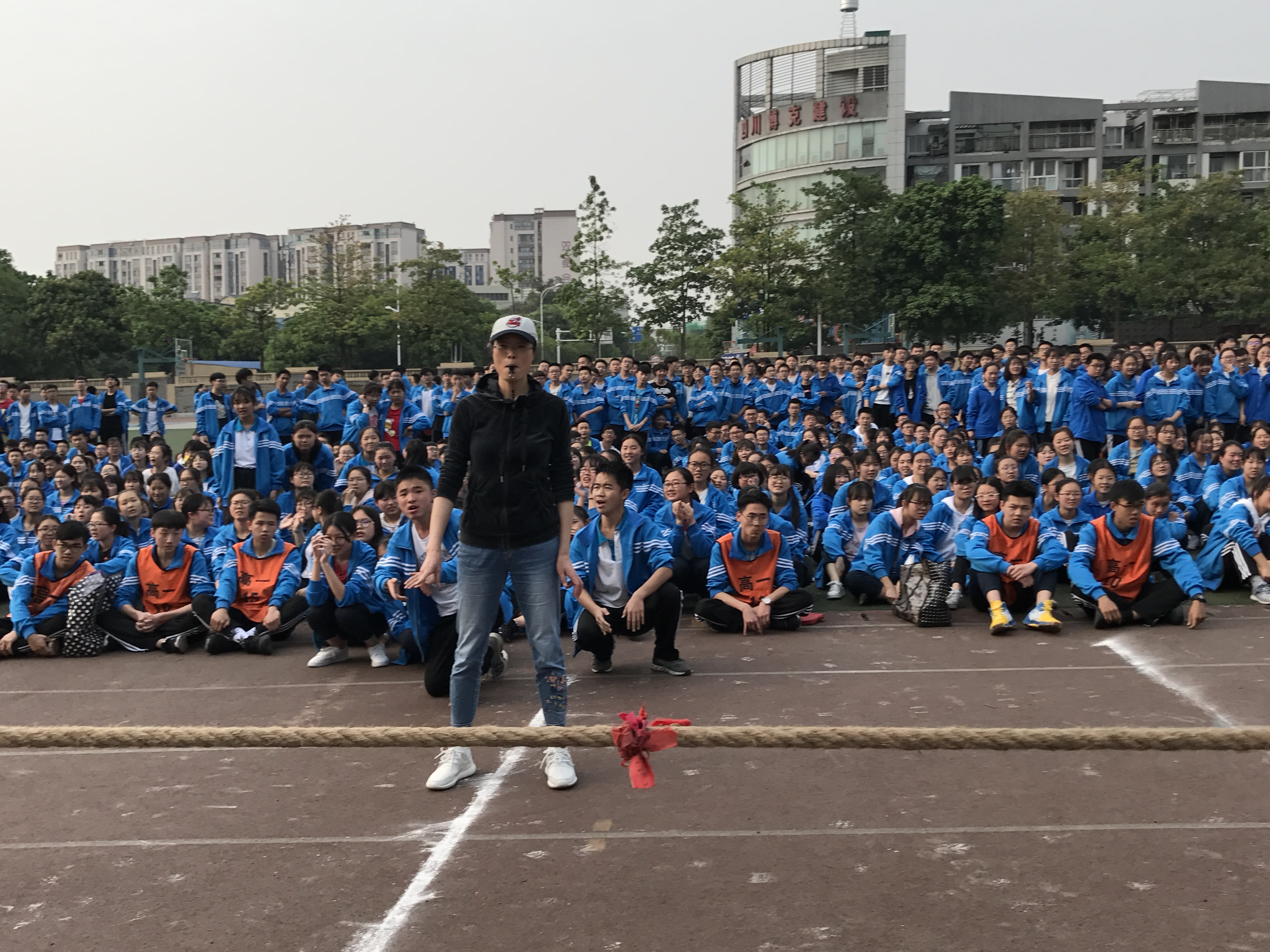 為了豐富學(xué)生的課余生活,培養(yǎng)同學(xué)們的團(tuán)隊(duì)精神和集體榮譽(yù)感,響應(yīng)“每天運(yùn)動(dòng)一小時(shí)”的陽(yáng)光體育活動(dòng)號(hào)召,雙流中學(xué)按照相關(guān)規(guī)定舉行了高一年級(jí)組拔河比賽。