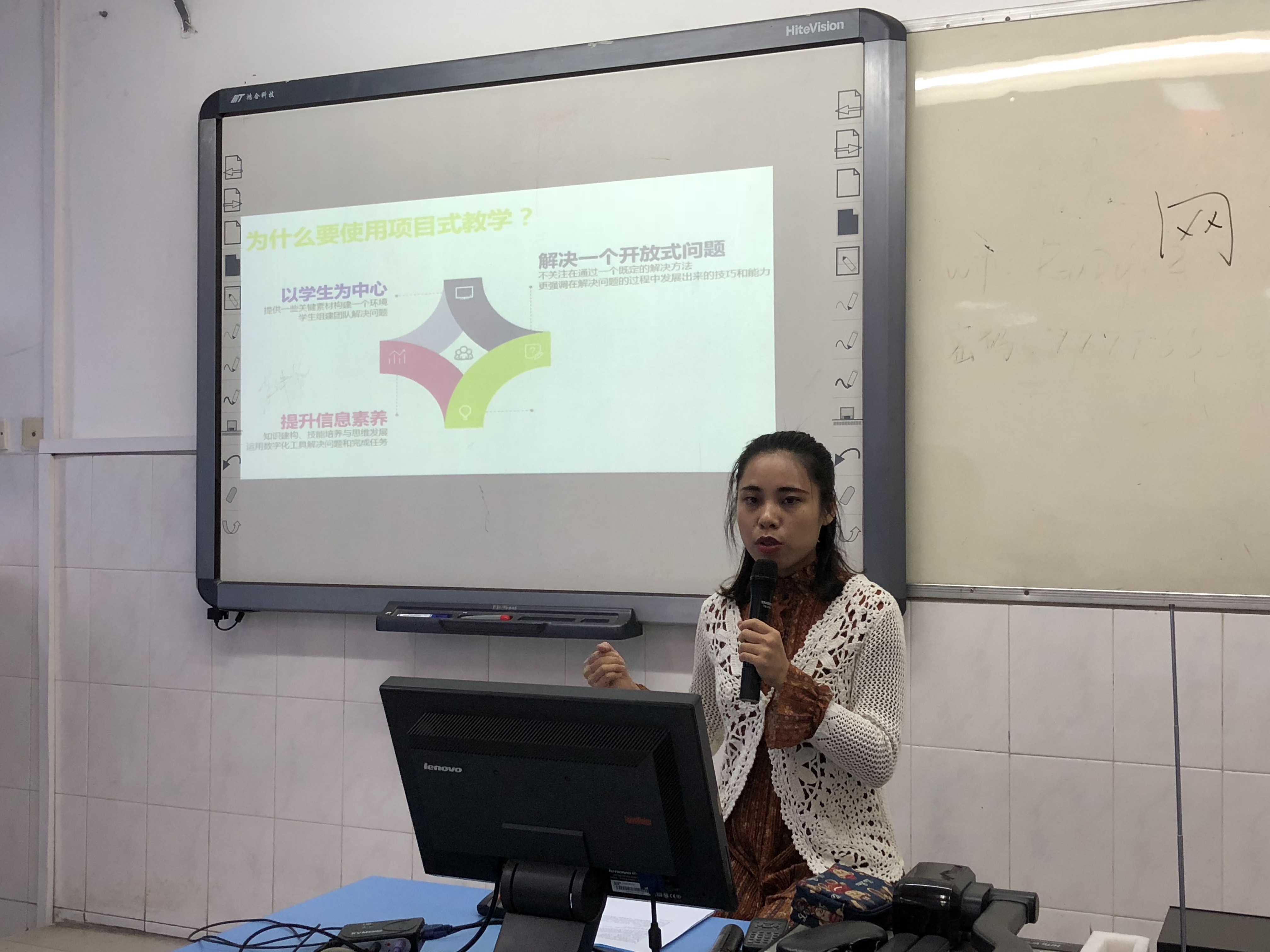 隨后,張茜老師以“信息技術(shù)中的項目式教學(xué)策略”為主題,和在座老師們分享了近兩年使用項目式教學(xué)法組織課堂的具體實施方法與取得的成績。張茜老師精心將教材里面的知識內(nèi)容設(shè)計成一個個與學(xué)生息息相關(guān)的具體項目,在提升知識理解度和提高學(xué)生參與度的同時,還能夠充分鍛煉學(xué)生組織與協(xié)作能力。