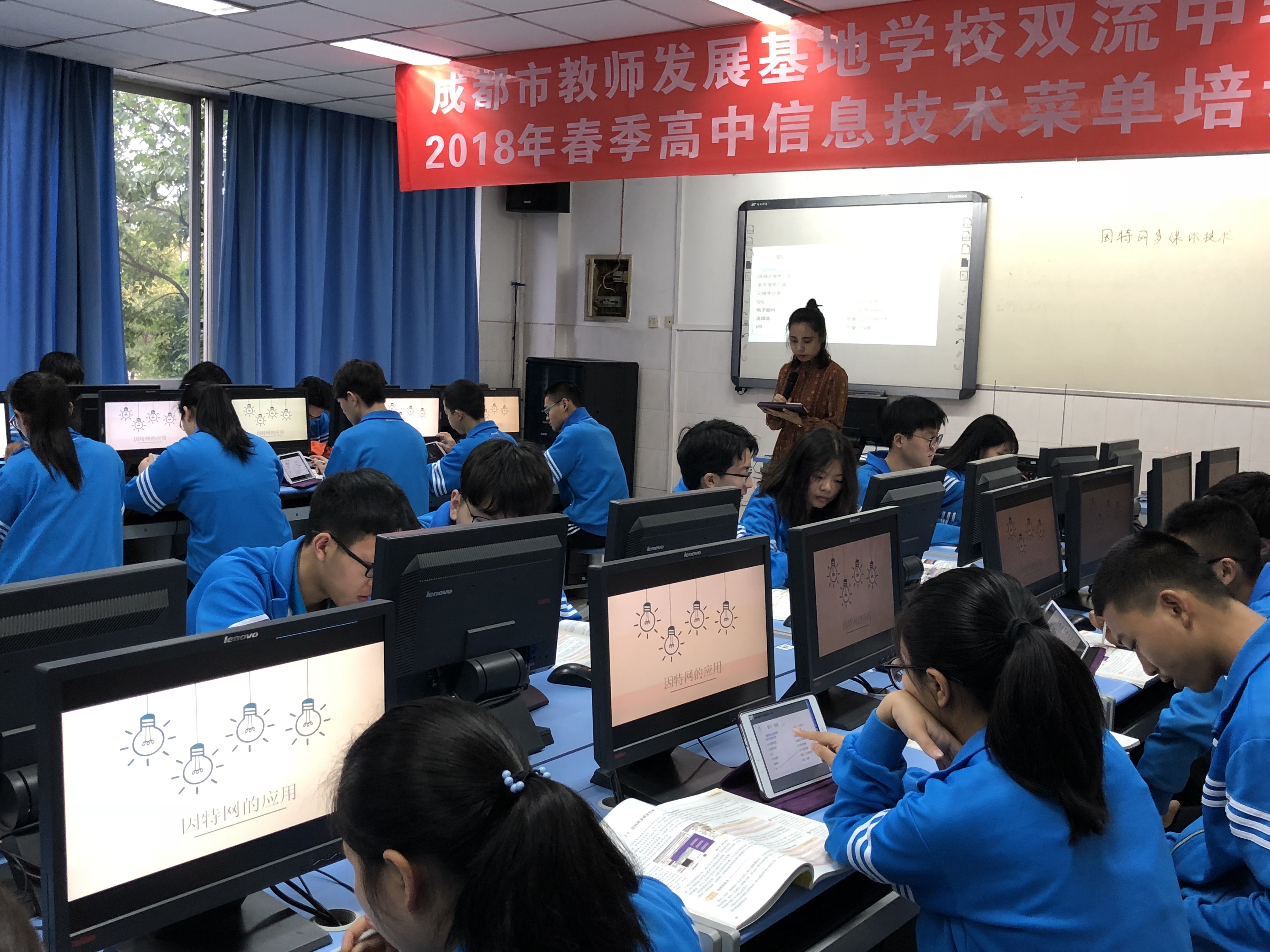 2018年4月13日上午8點45分,成都市教師發(fā)展基地學(xué)校雙流中學(xué)2018年春季高中信息技術(shù)菜單培訓(xùn)正式開始。在雙流中學(xué)科技樓三樓機(jī)房,來自成都各區(qū)縣的信息技術(shù)教師匯聚一堂,共同探討信息技術(shù)教學(xué)實施中的問題與對策。