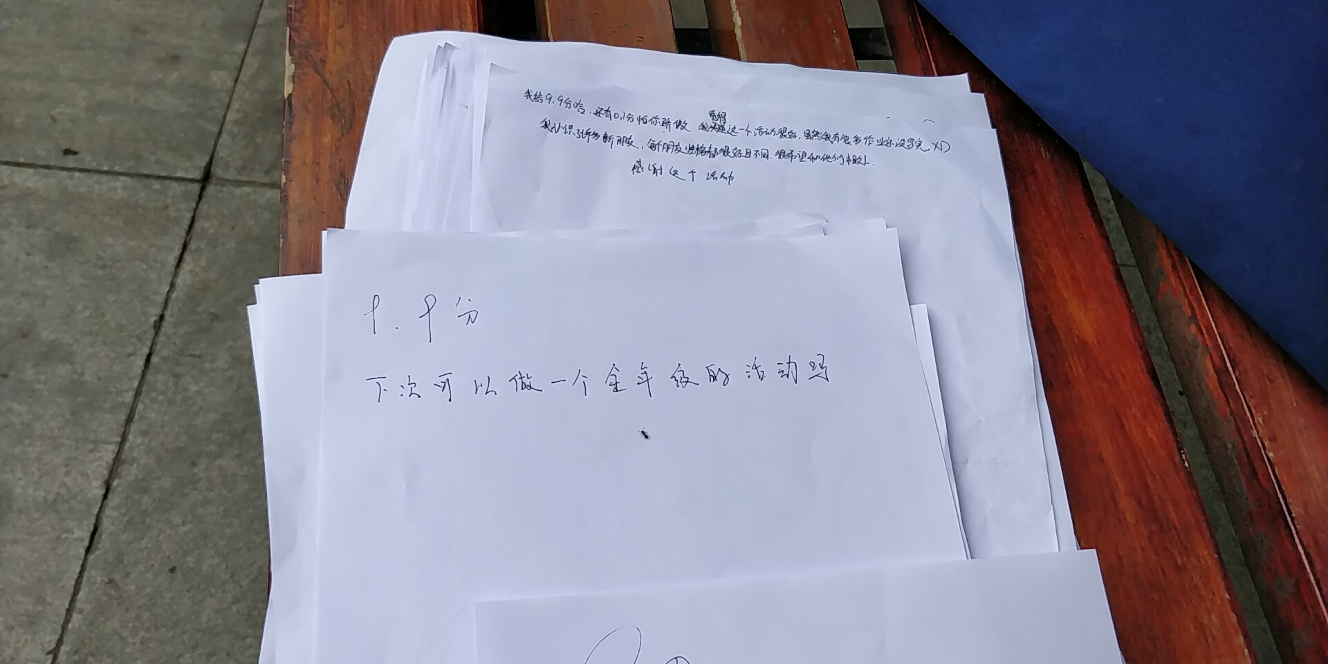 在同學(xué)們激昂的口號(hào)聲中,我們的活動(dòng)接近尾聲。我們邀請(qǐng)同學(xué)們?yōu)榻裉斓幕顒?dòng)設(shè)計(jì)打分,大話(huà)紛紛表示希望學(xué)??梢远嘟M織此類(lèi)活動(dòng),以增進(jìn)同學(xué)們的交流和了解。