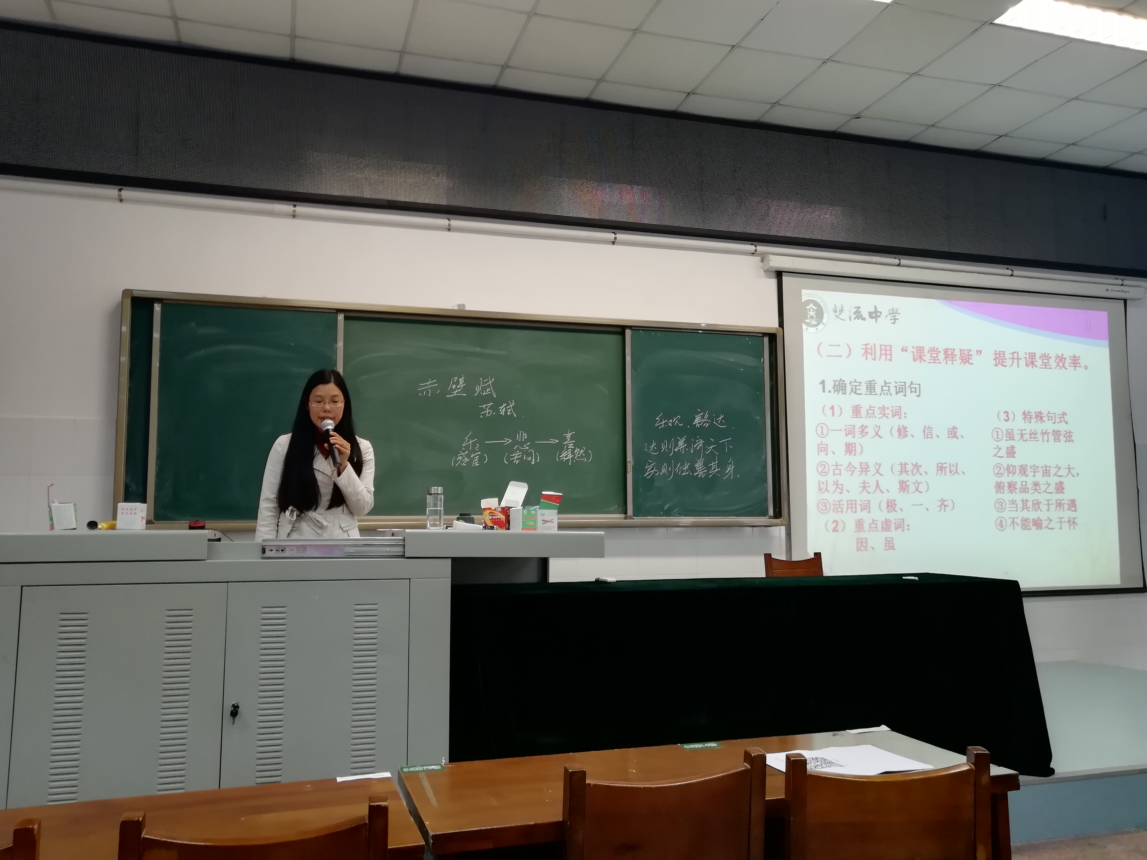 雙流中學(xué)宋淑蘭老師上公示課《游褒禪山記》,注重講授文言字詞,發(fā)揮學(xué)生學(xué)習(xí)的主動性,進(jìn)行小組合作學(xué)習(xí),課堂氣氛熱烈。林小亮老師上公示課《赤壁賦》,結(jié)合蘇軾在黃州時期的作品,引導(dǎo)學(xué)生深入探求《赤壁賦》的文化內(nèi)涵,深入淺出,贏得在場老師一致好評。