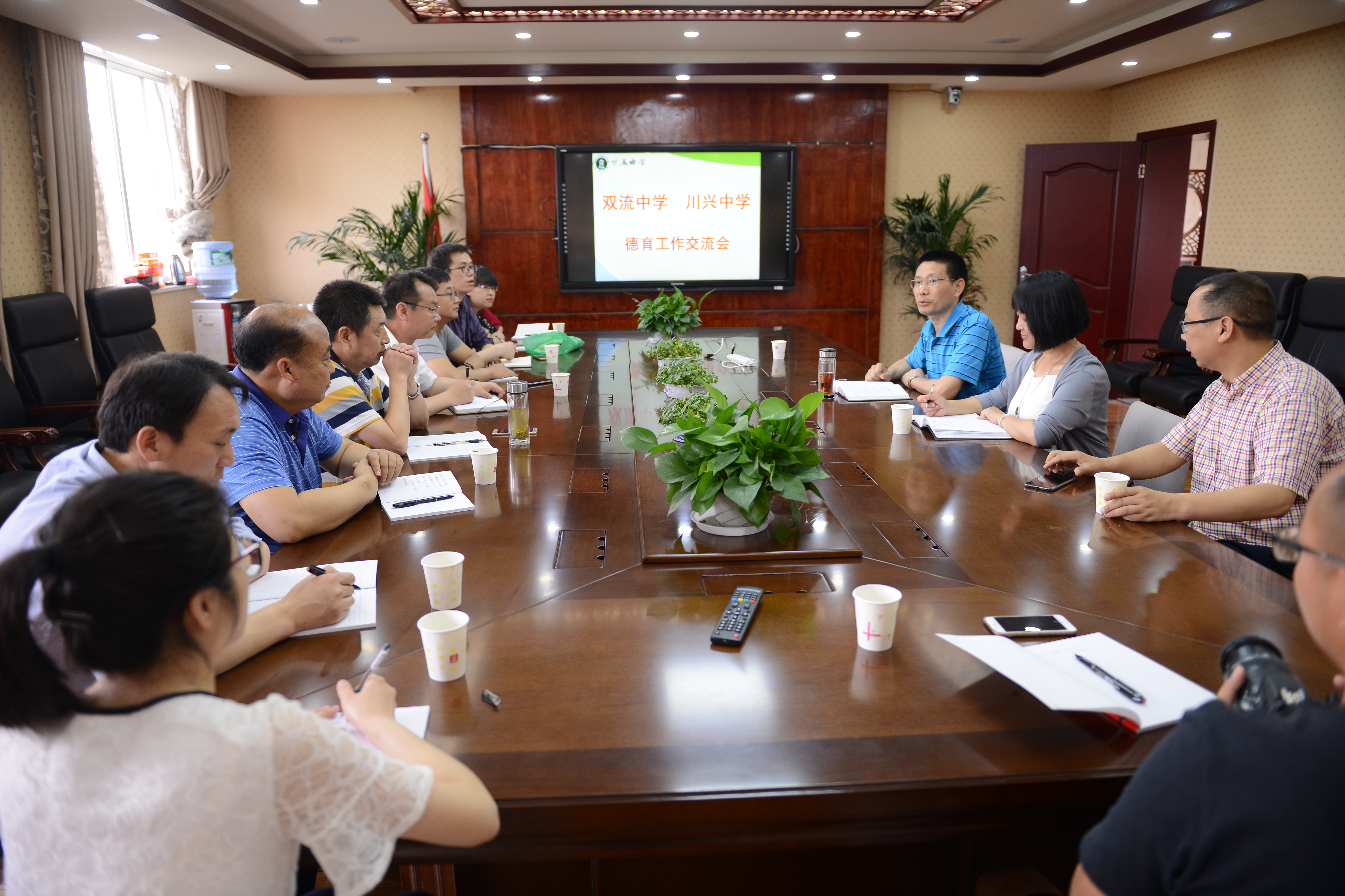 2018年5月3日,西昌川興中學(xué)一行十余人在其學(xué)校領(lǐng)導(dǎo)的帶領(lǐng)下拜訪雙流中學(xué)并展開深入交流,雙流中學(xué)全面主持學(xué)校工作的龍清明副校長(zhǎng)、雙流中學(xué)黨總支副書記向發(fā)友、辦公室副主任李衛(wèi)東、德育處副主任張巧菊和校團(tuán)委副書記汪思杰熱情接待了來訪嘉賓。
