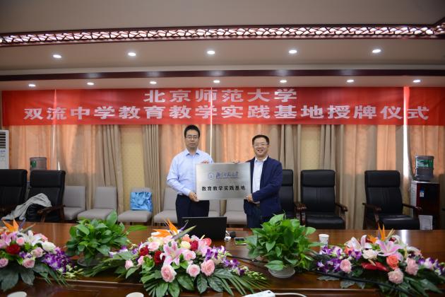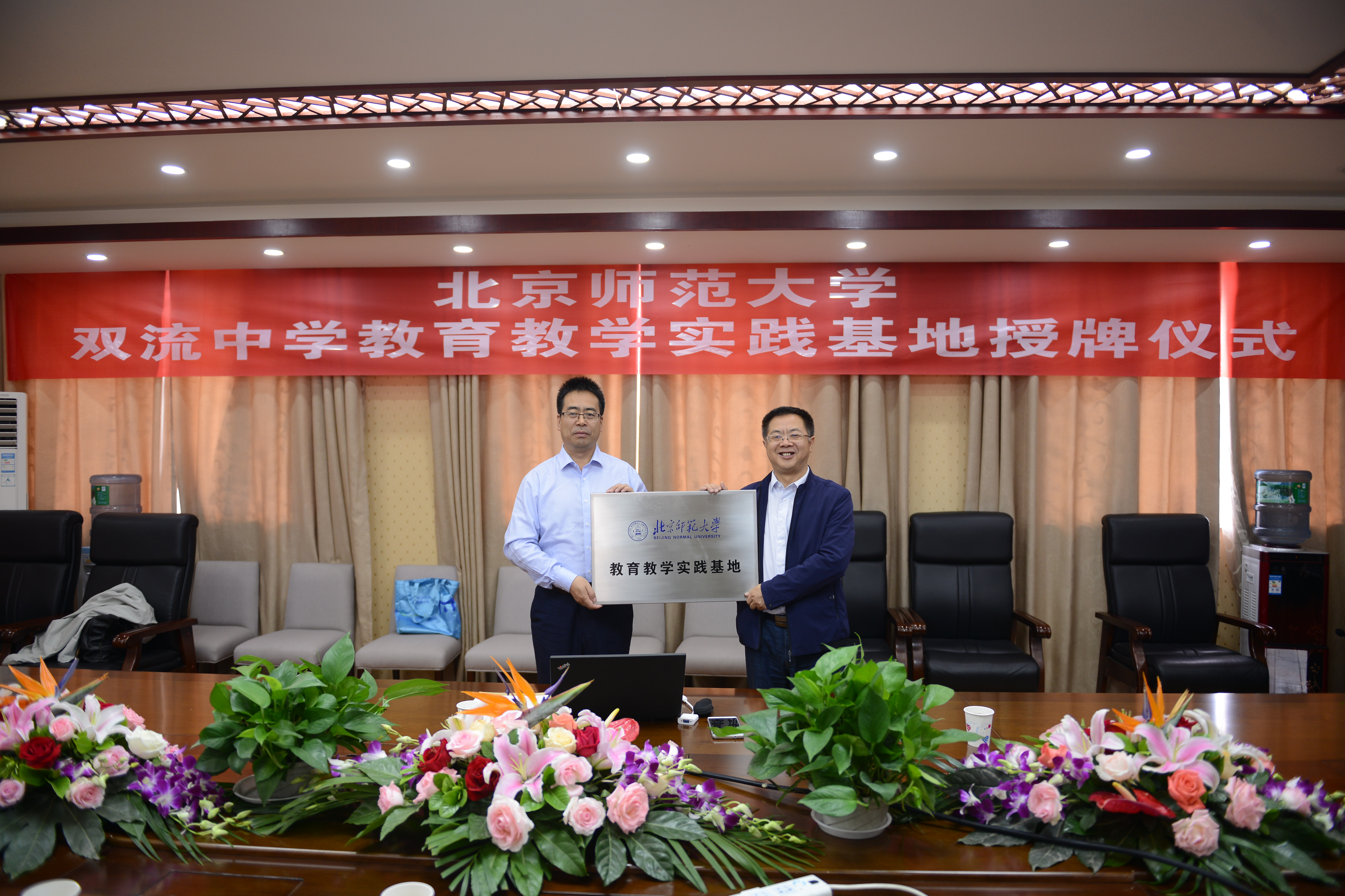 其次,雙方舉行了授牌儀式并合影留念,雙流中學正式成為北京師范大學的教育教學實踐基地。