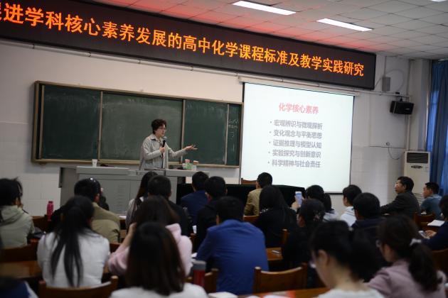 緊接著,王磊教授在雙流中學多功能二廳做了《促進學科核心素養(yǎng)發(fā)展的高中化學 課程及教學實踐研究》的講座,雙流區(qū)全體高中化學教師和金堂中學、成都師院部分老師全程參與。