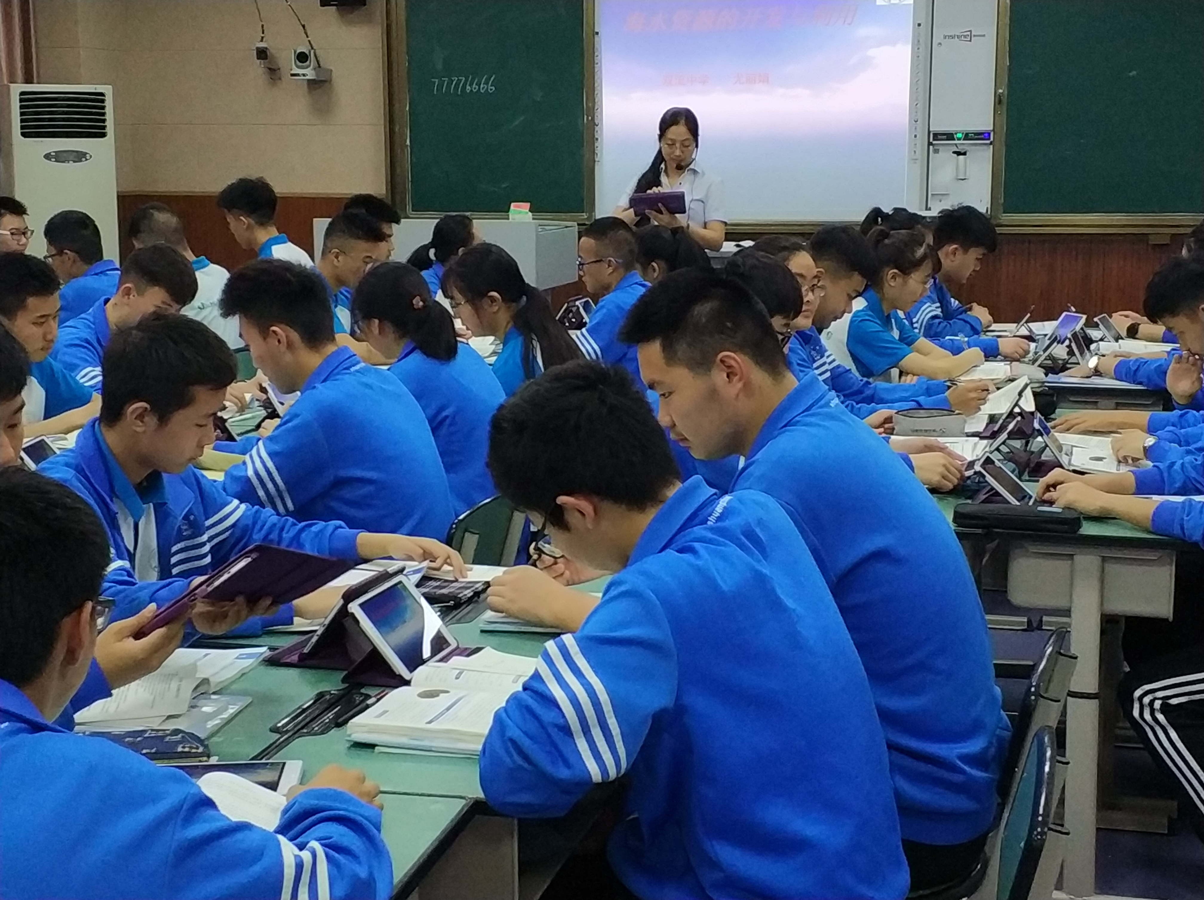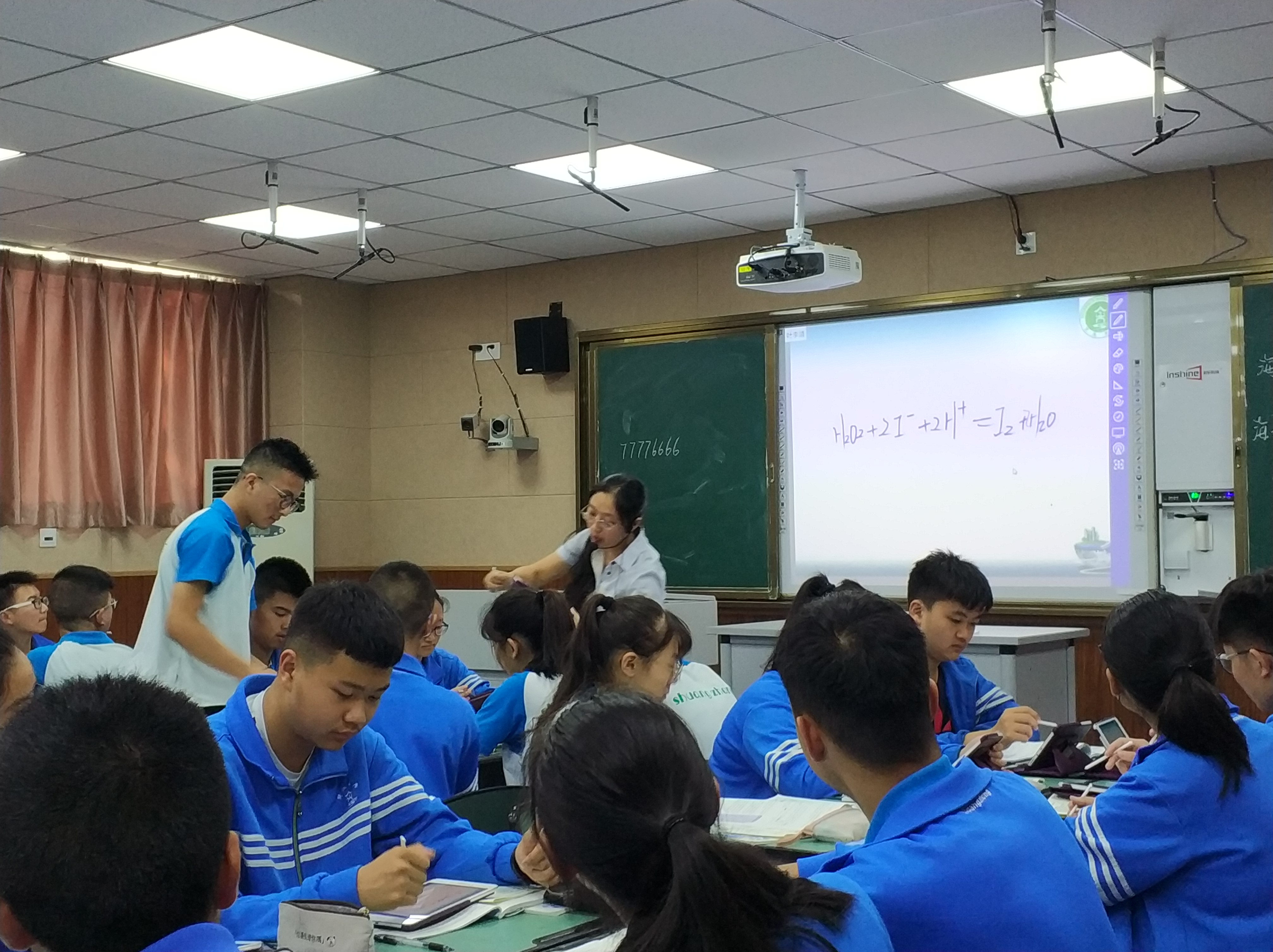 首先,雙流中學(xué)崔正淳工作室的尤麗娟老師在高一12班獻(xiàn)課。尤老師將平板教學(xué)與自主學(xué)習(xí)、合作學(xué)習(xí)結(jié)合起來(lái),讓學(xué)生查找海水淡化方法并交流匯報(bào),讓學(xué)生親自動(dòng)手操作海帶提碘實(shí)驗(yàn)并錄成微課展示,用化工流程圖分析海帶提碘和海水提溴的過(guò)程,與學(xué)生同屏互動(dòng)深入追問(wèn)海水資源利用背后的化學(xué)原理,同時(shí)提醒學(xué)生注意不要過(guò)度開發(fā)海洋資源造成海洋污染。