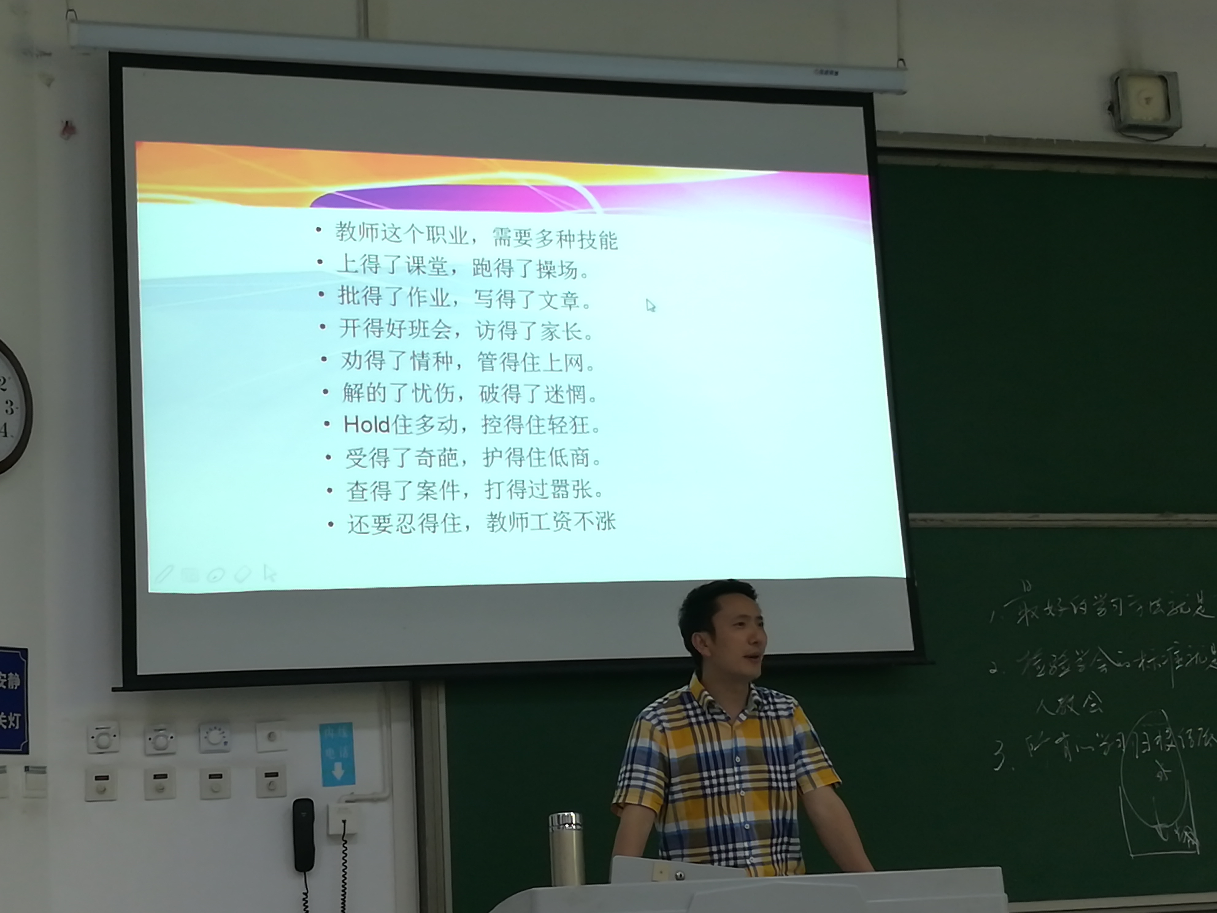 談到實習(xí)時,金老師鼓勵同學(xué)們做好生涯規(guī)劃,用科學(xué)方法做好性格能力測試,一旦決定從教,在實習(xí)階段就要樹立好目標(biāo),領(lǐng)悟3個理念,鍛造3種課型,避免5個誤區(qū),參加N多教研會,錯位發(fā)展打造自身特色亮點。