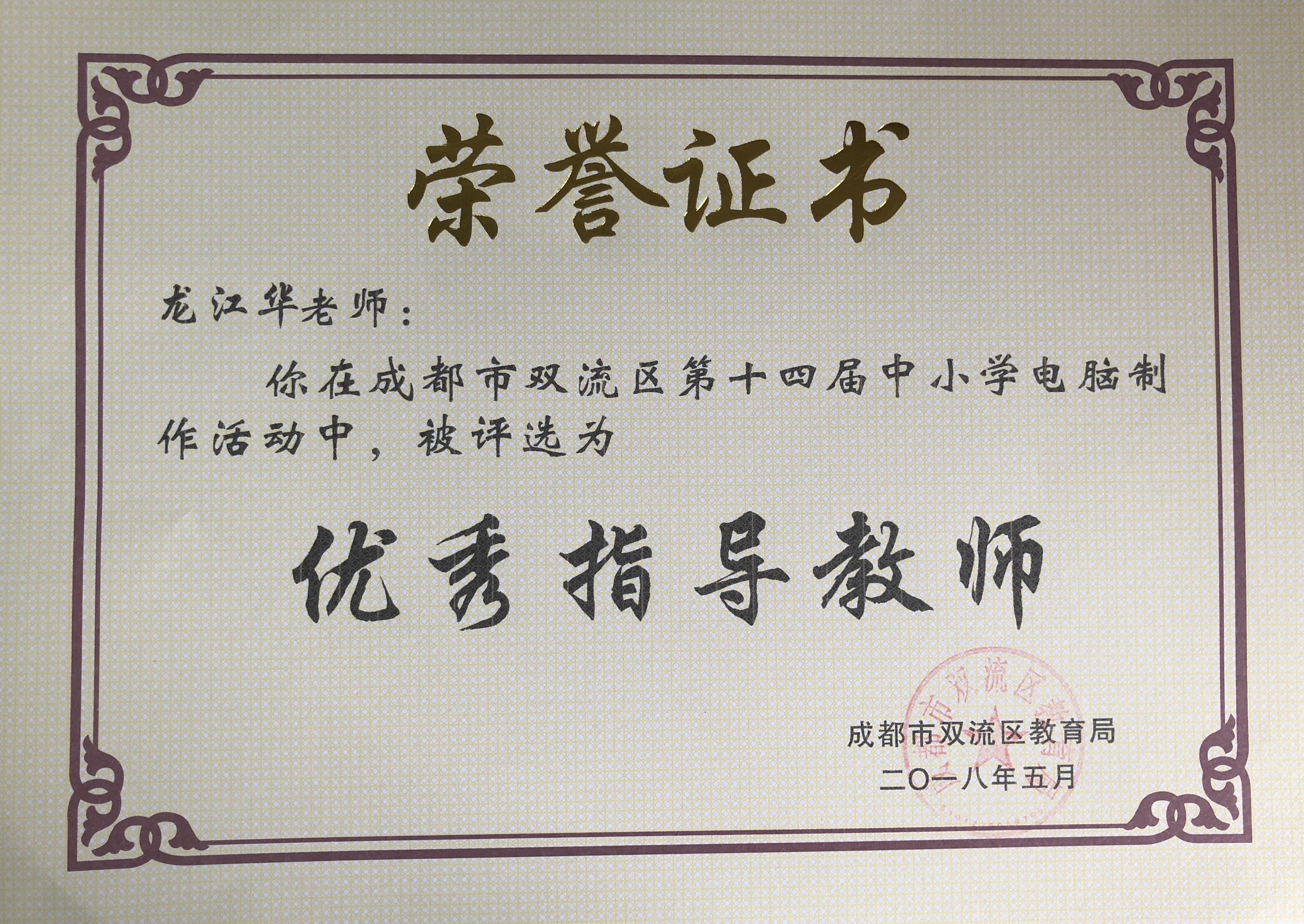 龍江華老師獲獎證書龍江華老師獲獎證書