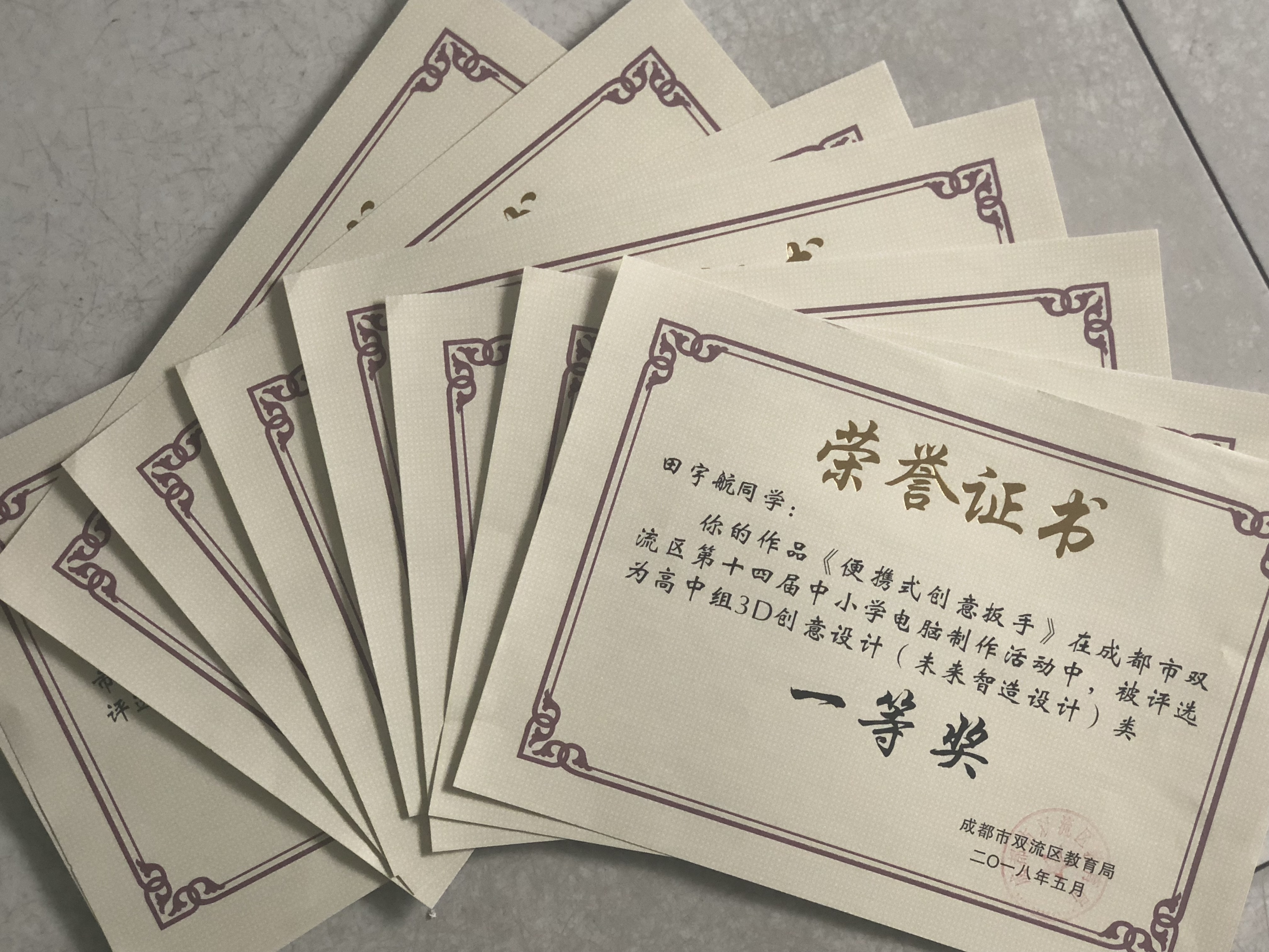 李文逍、田宇航等16名同學(xué)榮獲雙流區(qū)一等獎;
