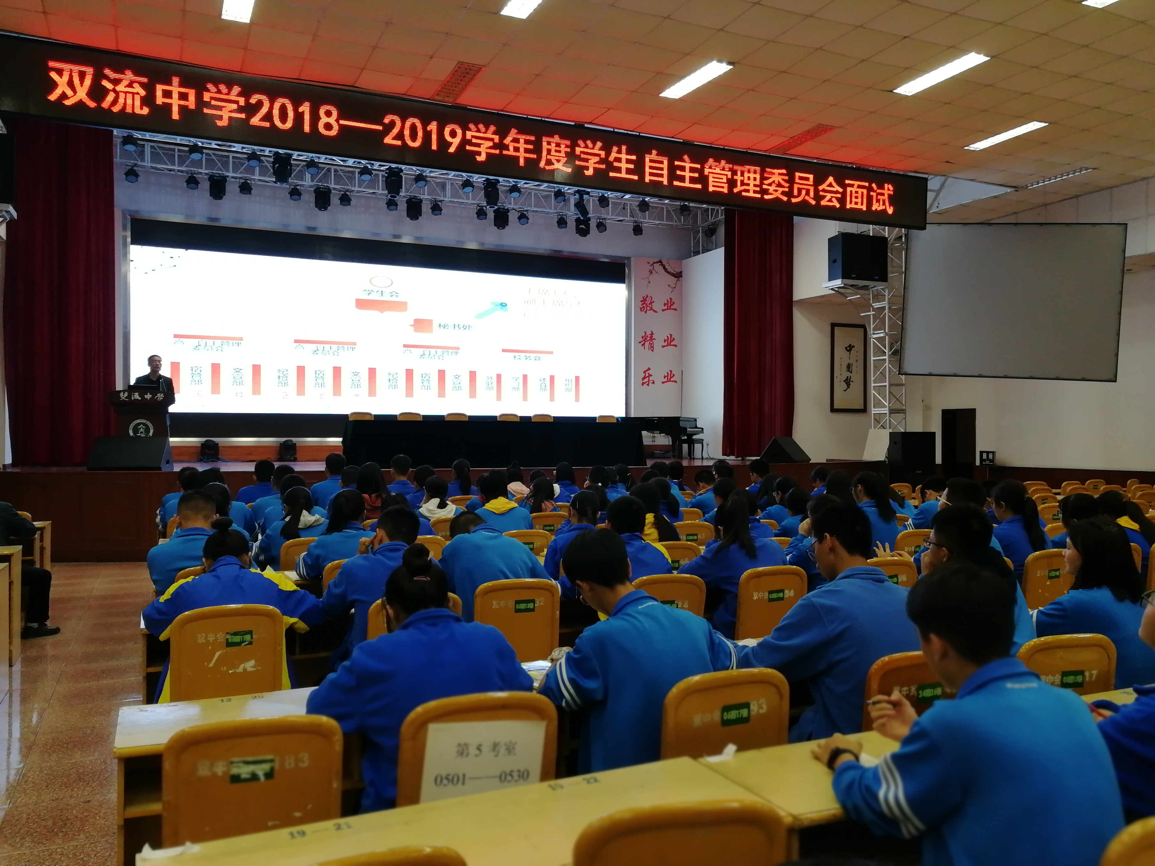 經(jīng)過長時間的籌備整合,10月15日,雙流中學(xué)正式召開“學(xué)生自主管理委員會成立大會”,學(xué)生自主主持會議各項議程,明確各個部門職責(zé),布置本學(xué)期工作。至此,雙流中學(xué)學(xué)生自主管理委員會正式宣告成立。