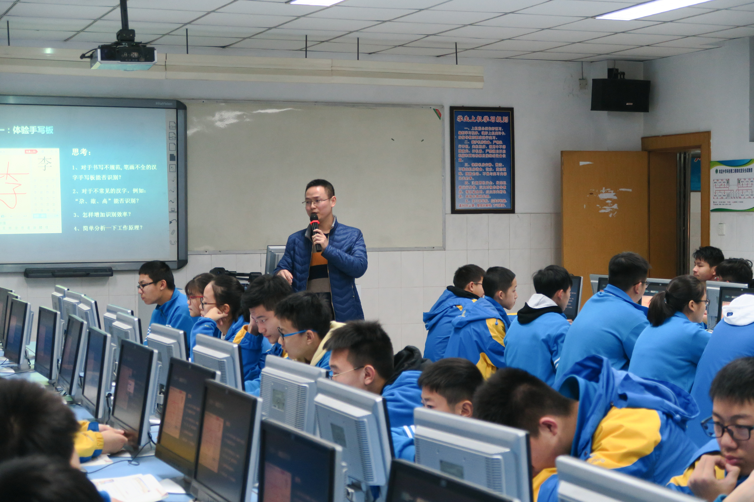賀其備老師以視頻“奇怪的酒店”作為引入,勾起了學生對智能時代的無限好奇。緊接著分析了人工智能的定義以及人工智能的范疇,使學生對人工智能有了一定認識。然后以手寫輸入與機器翻譯為例,闡釋了人工智能的工作過程。最后與學生一起探討了人工智能在我們生活中的應用價值。賀其備老師使用了幾個生動的課堂案例充分調(diào)動了學生們的參與熱情,課堂氣氛十分活躍。