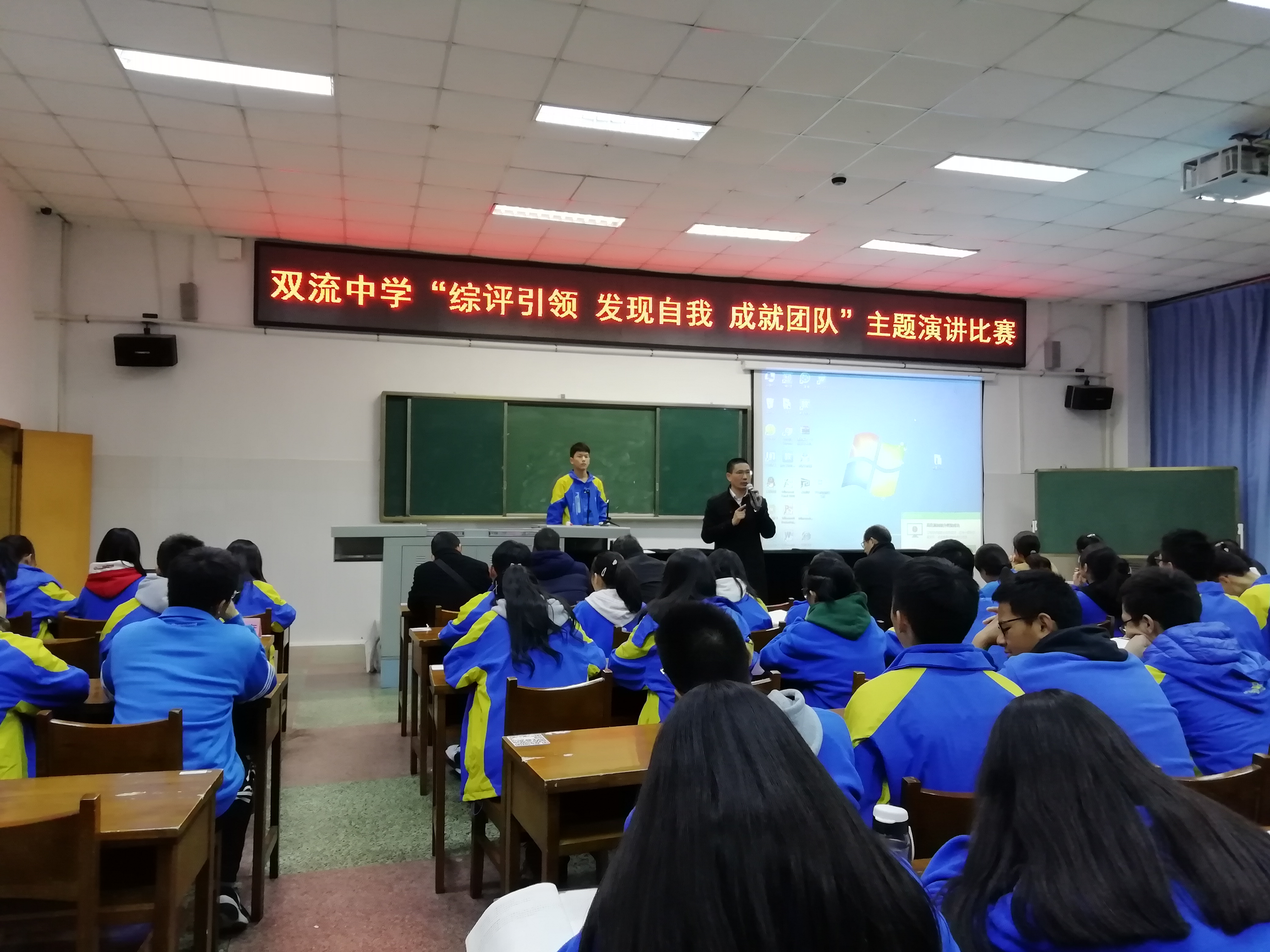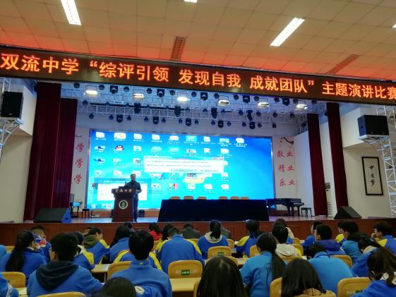 雙流中學(xué)舉辦主題為“綜評(píng)引領(lǐng) 發(fā)現(xiàn)自我 成就團(tuán)隊(duì)”的演講比賽