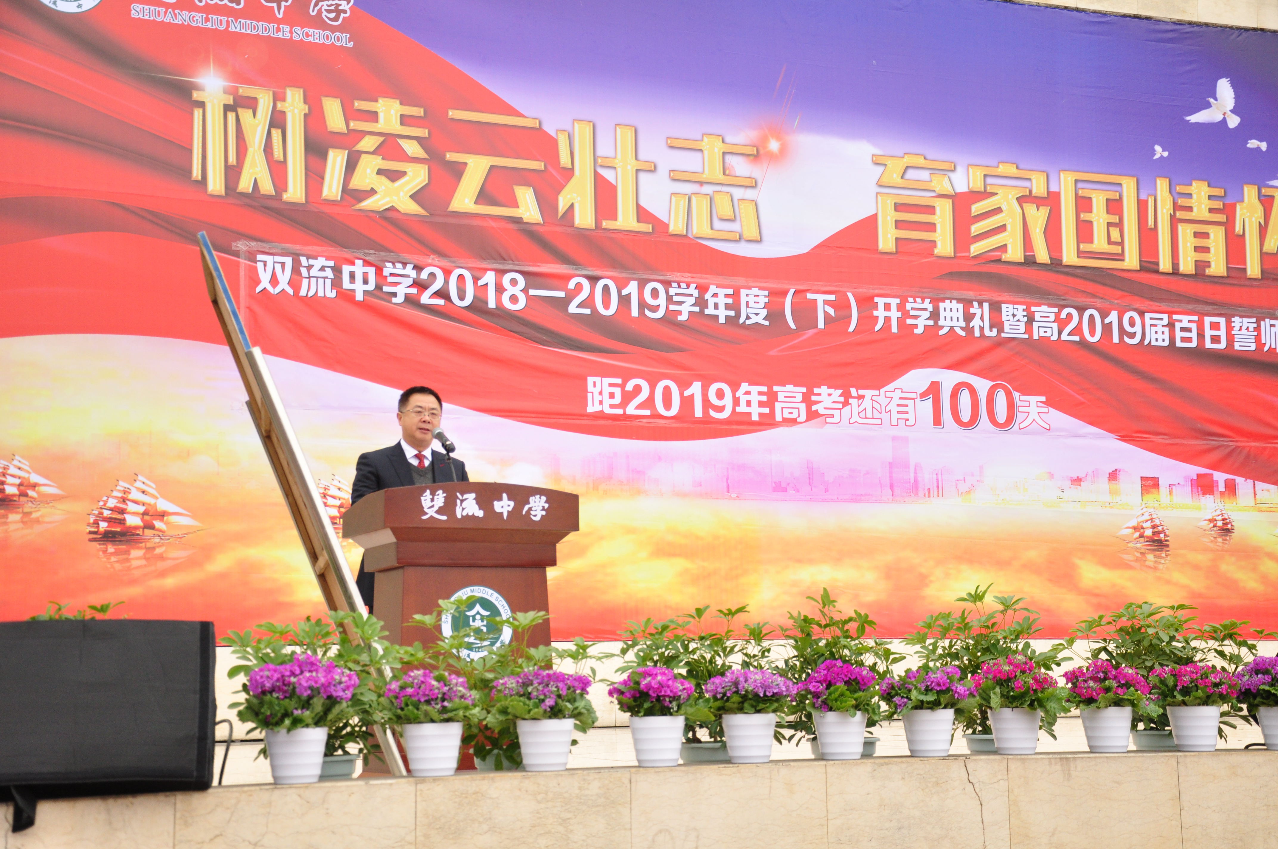 帶著新春的喜慶,帶著美好的憧憬,帶著高昂的斗志,在2019年2月27日這個特殊的日子里,為了讓新學期有一個嶄新的開始,也讓高三年級的同學們能夠把握高考最后的100天,雙流中學隆重舉行開學典禮暨高考百日誓師大會,全體行政領導,高三年級全體教師及全校同學們參加了此次大會。