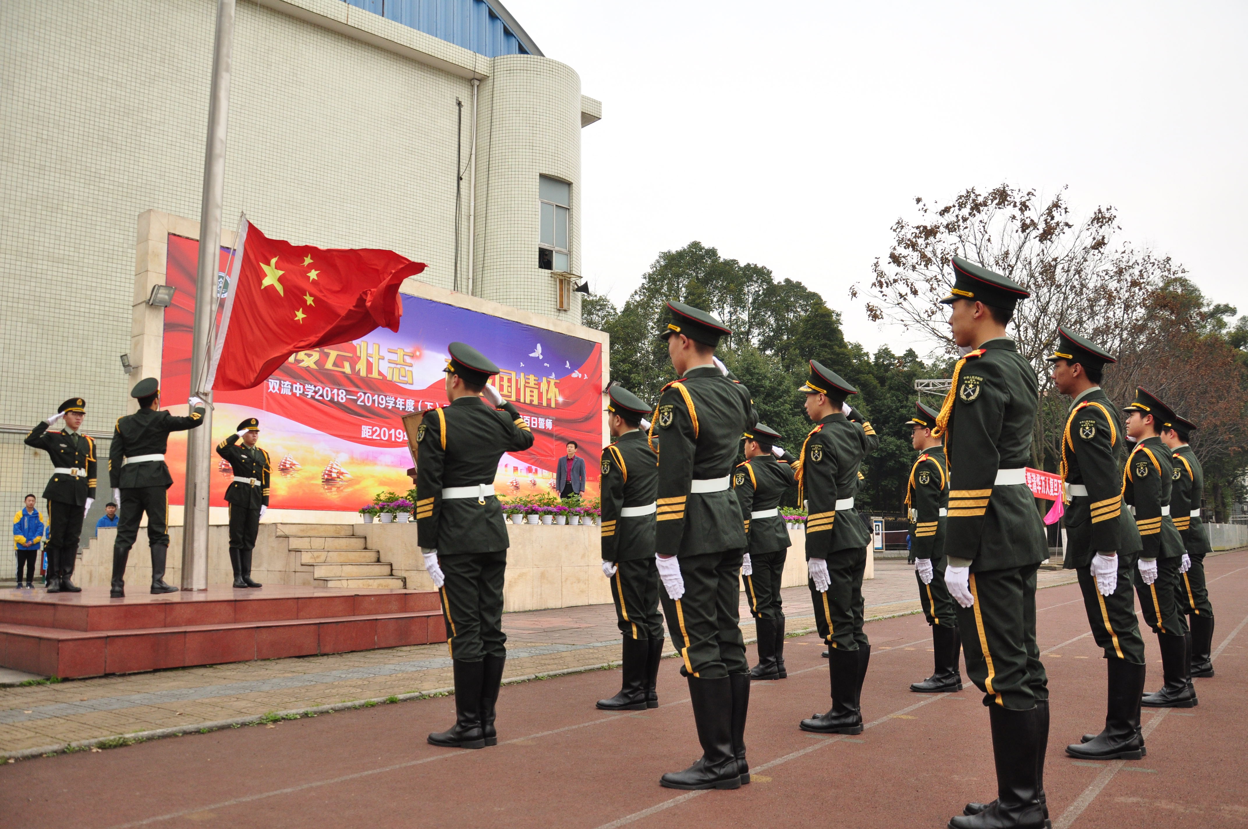 在莊嚴的國歌聲中,五星紅旗在雙中的晴空冉冉升起,見證著雙中學子的“凌云之志”與“家國情懷”。