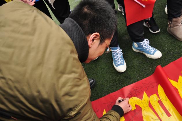 最后,在激昂的歌聲中,同時進行了學生簽名活動,同學們將自己的目標親手寫在橫幅上,在之后的100天里鼓舞自己。全班同學的簽名橫幅將懸掛在教室,一直激勵大家激情備考?;顒釉谕瑢W們飛揚的歌聲中拉下帷幕,快閃歌曲《我和我的祖國》和《年輕的戰(zhàn)場》響徹雙中上空,同學們歌唱祖國,歌唱青春,歌唱夢想,同學們手中揮舞的五星紅旗匯成了一片小小的海洋,翻涌著的是我們對青春的贊美,對夢想的追尋和對祖國的熱愛。
