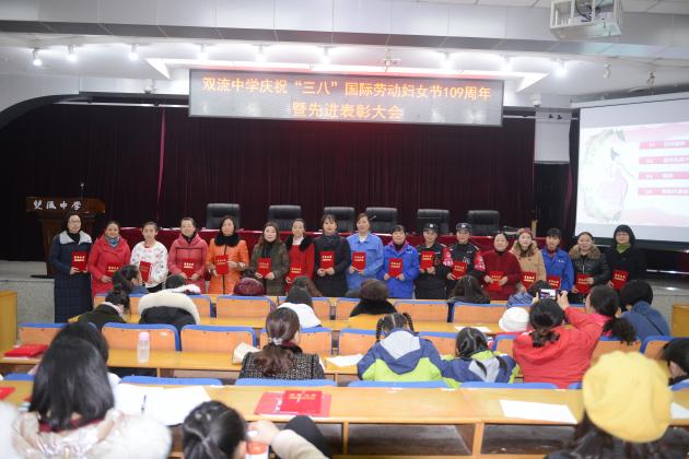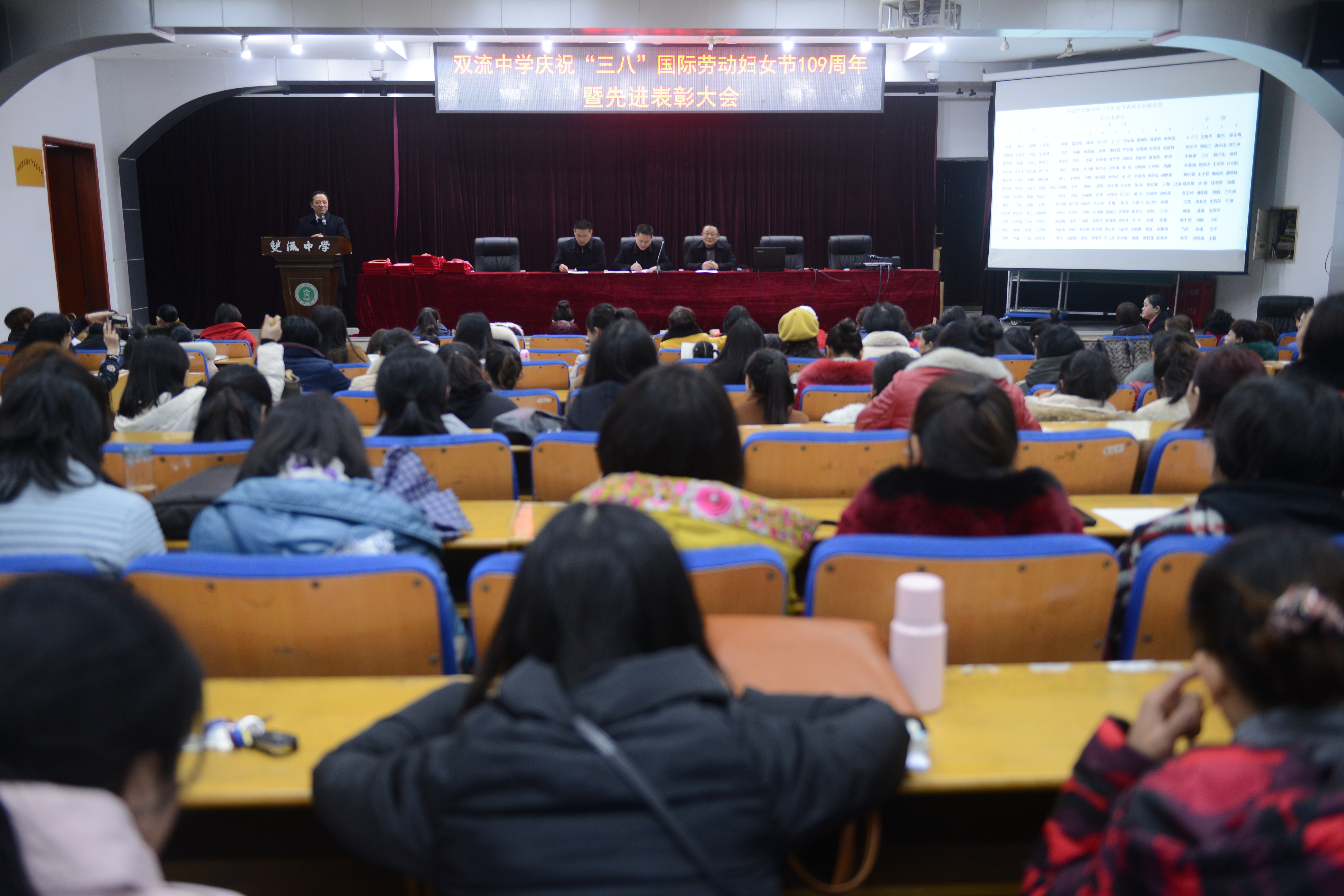 上午九點(diǎn)半,學(xué)校在學(xué)術(shù)廳召開“慶?!恕瘒H勞動(dòng)?jì)D女節(jié)109周年暨先進(jìn)表彰大會(huì)”,學(xué)校全體女性教職工及部分行政領(lǐng)導(dǎo)參加此次會(huì)議。會(huì)議由工會(huì)主席田明建主持,首先,雙流中學(xué)副校長(zhǎng)徐天福代表學(xué)校發(fā)言,充分肯定并感謝了女教職工們對(duì)學(xué)校發(fā)展所做的貢獻(xiàn),給女教職工們送上誠摯的節(jié)日祝福。
