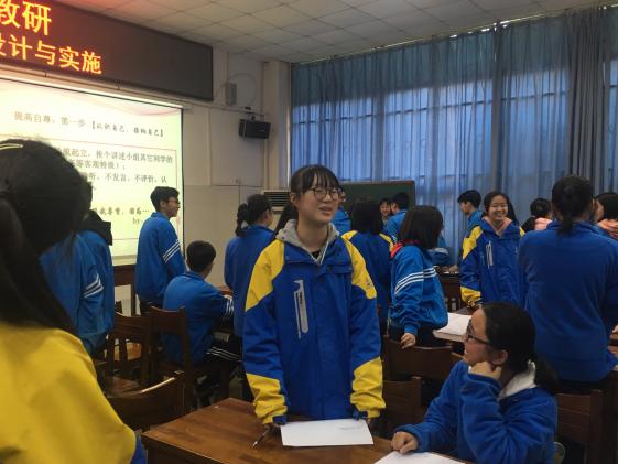 短暫的休息之后,伍賢軍老師為大家?guī)砹艘惶妙}為“學(xué)會自尊,健康成長”的主題班會課。伍老師首先請學(xué)生辯論自尊心強(qiáng)到底好還是不好,通過學(xué)生們的唇槍舌戰(zhàn),引導(dǎo)他們正確認(rèn)識自尊。接著,伍老師通過學(xué)生自評、他評的方式讓學(xué)生認(rèn)識、接納、提高、完善自己。整堂課流暢連貫,層層推進(jìn)。同學(xué)們發(fā)自肺腑的互相鼓勵和認(rèn)可,不僅感動了學(xué)生自己,還感染了在座所有的老師。