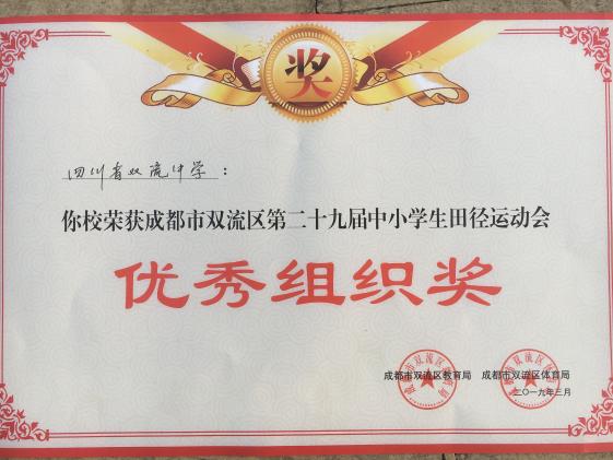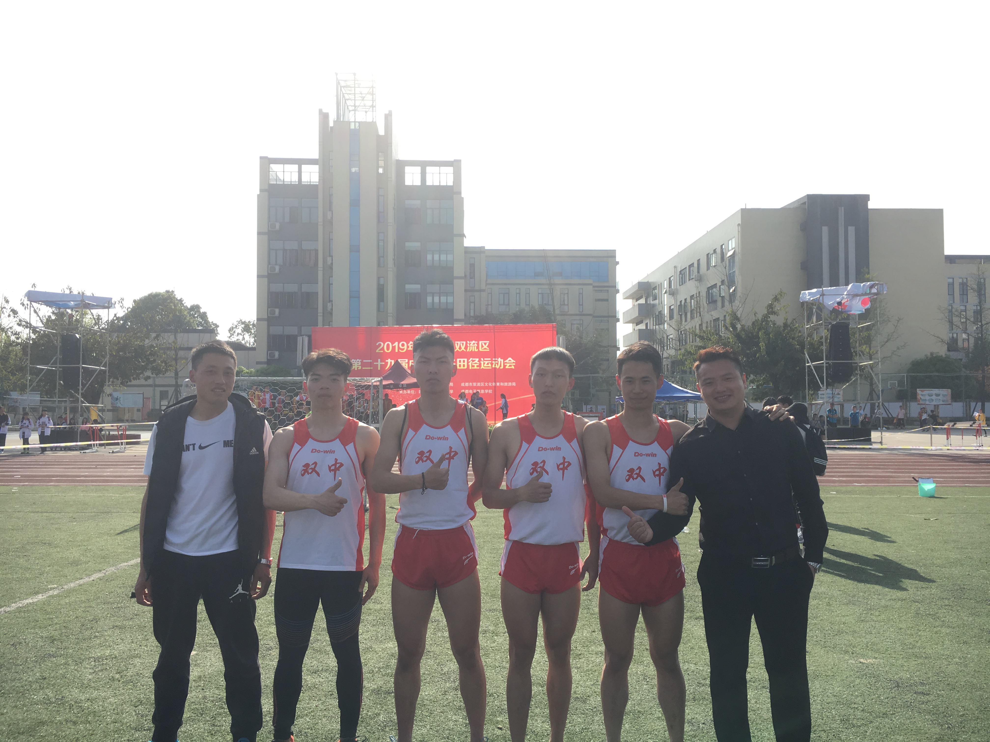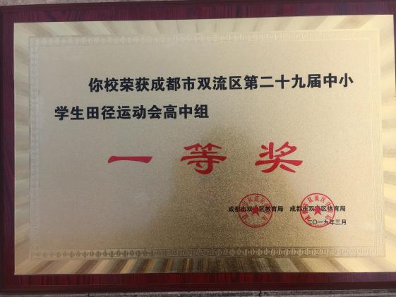 在學校領(lǐng)導(dǎo)、各位班主任的支持和校田徑教練的精心指揮下,我校田徑代表隊在本次比賽中勇奪15金9銀5銅,此外有9人三次打破雙流區(qū)高中生最高記錄。他們分別是樊佳思以12.46米打破女子三級跳遠12.05米的原高中生最高記錄;李富雙、閆越洋、杜宇杰、劉涵生以42.86秒打破男子4×100米43.23秒的原高中生最高記錄;潘錦潤、胡珮琪、李謙、樊佳思以50.59秒打破女子4×100米50.91的原高中生最高記錄。最終雙流中學以男、女、總團體總分第一的成績榮獲高中組一等獎和優(yōu)秀組織獎。