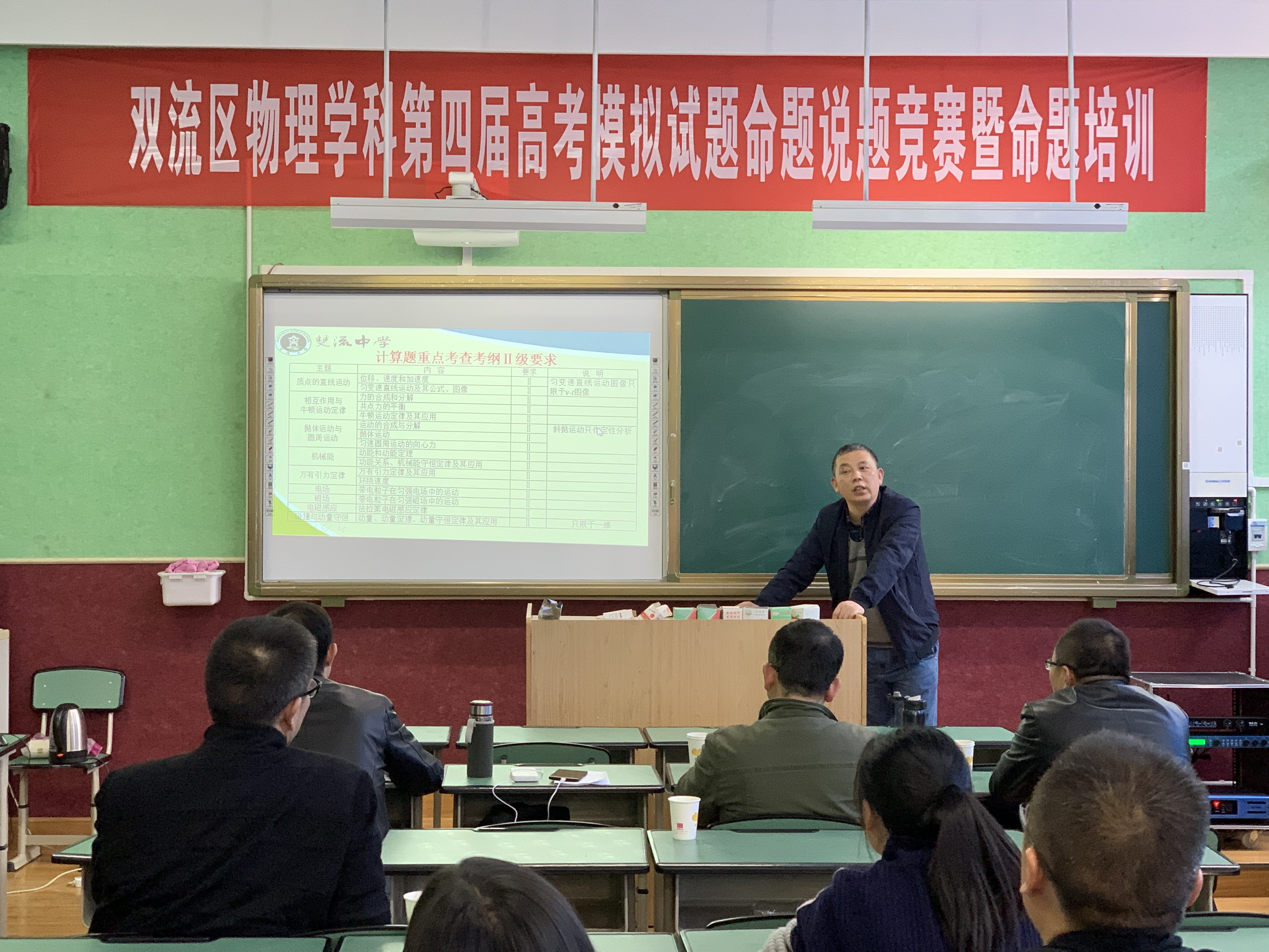 2019年3月28日,由雙流區(qū)研培中心舉辦的“第四屆高考模擬試題命題說題競賽”順利舉行,來自全區(qū)的三十余名高三物理教師參加了此次活動。此次活動最重要的環(huán)節(jié)由各學校對原創(chuàng)題進行命題說題競賽,特邀到成都市教育科學研究所物理教研員盧山老師擔任評委,成都市雙流區(qū)高中物理教研員滕剛老師主持活動并擔任此次競賽的評委。經(jīng)過激烈的角逐,我校高三物理組以278分獲得大賽一等獎。