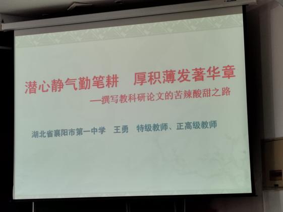 王勇校長(zhǎng)展開(kāi)題為《潛心靜氣勤筆耕,厚積簿發(fā)著華章——撰寫(xiě)教科研論文的苦辣酸甜之路》的專(zhuān)題講座,向參會(huì)老師介紹了自己從教數(shù)十年來(lái)的教育科學(xué)研究論文的創(chuàng)作之路,分享了在創(chuàng)作過(guò)程中形成的成功經(jīng)驗(yàn),暢談了自己的創(chuàng)作感悟。