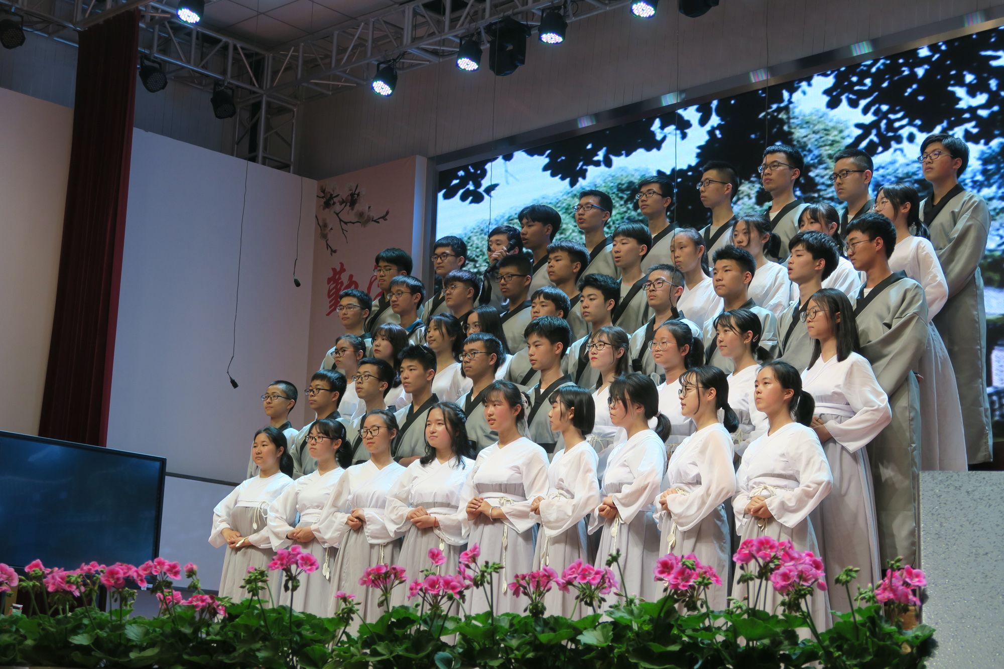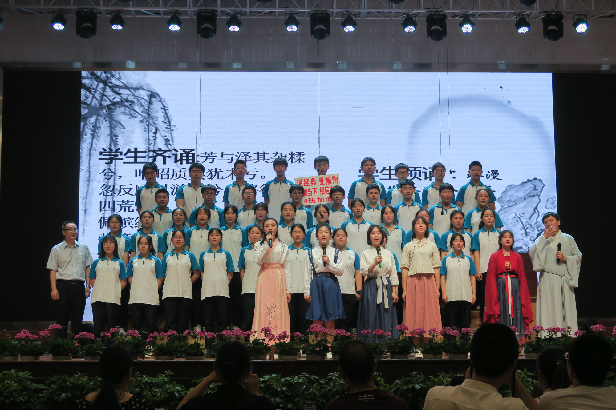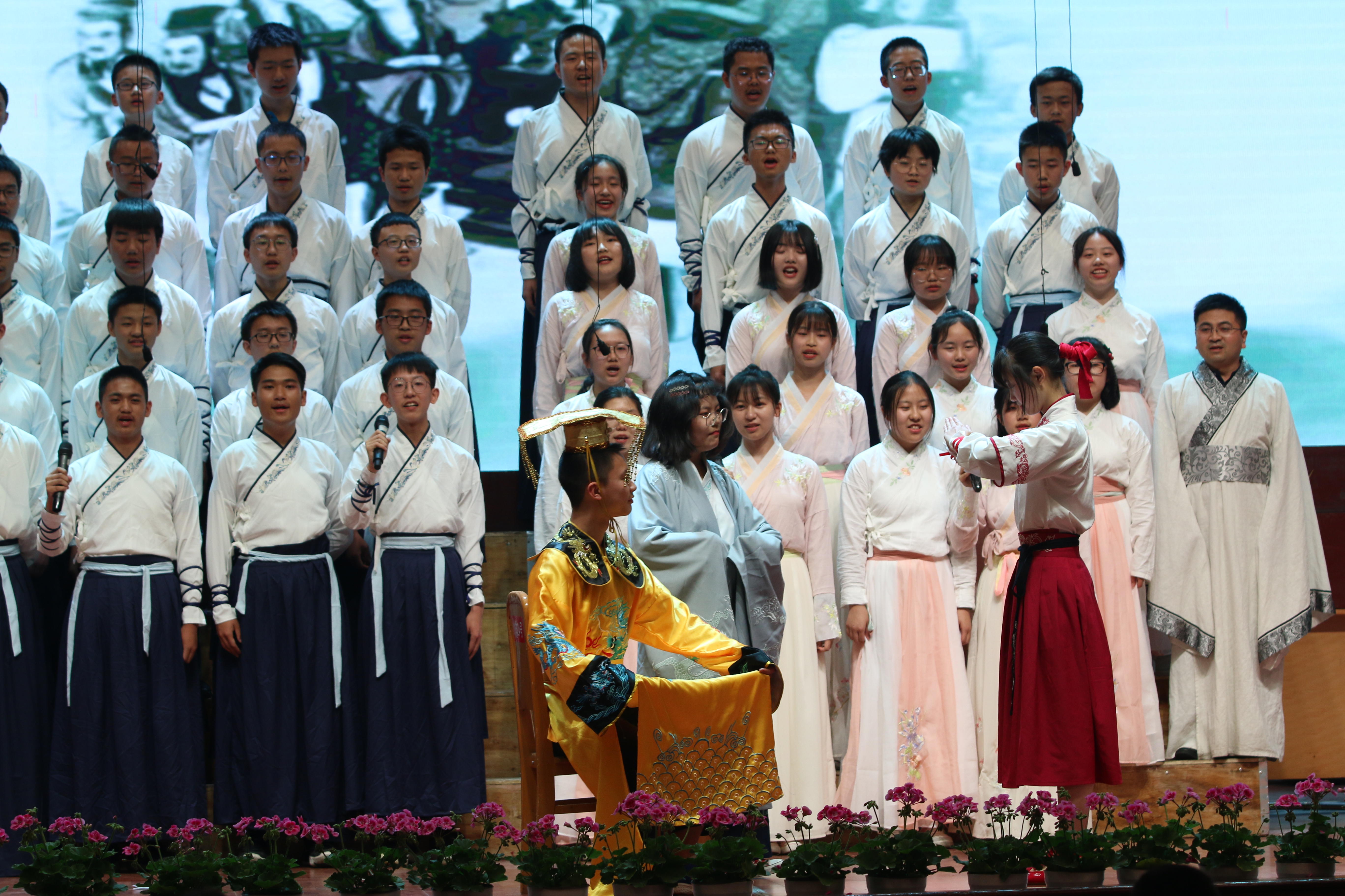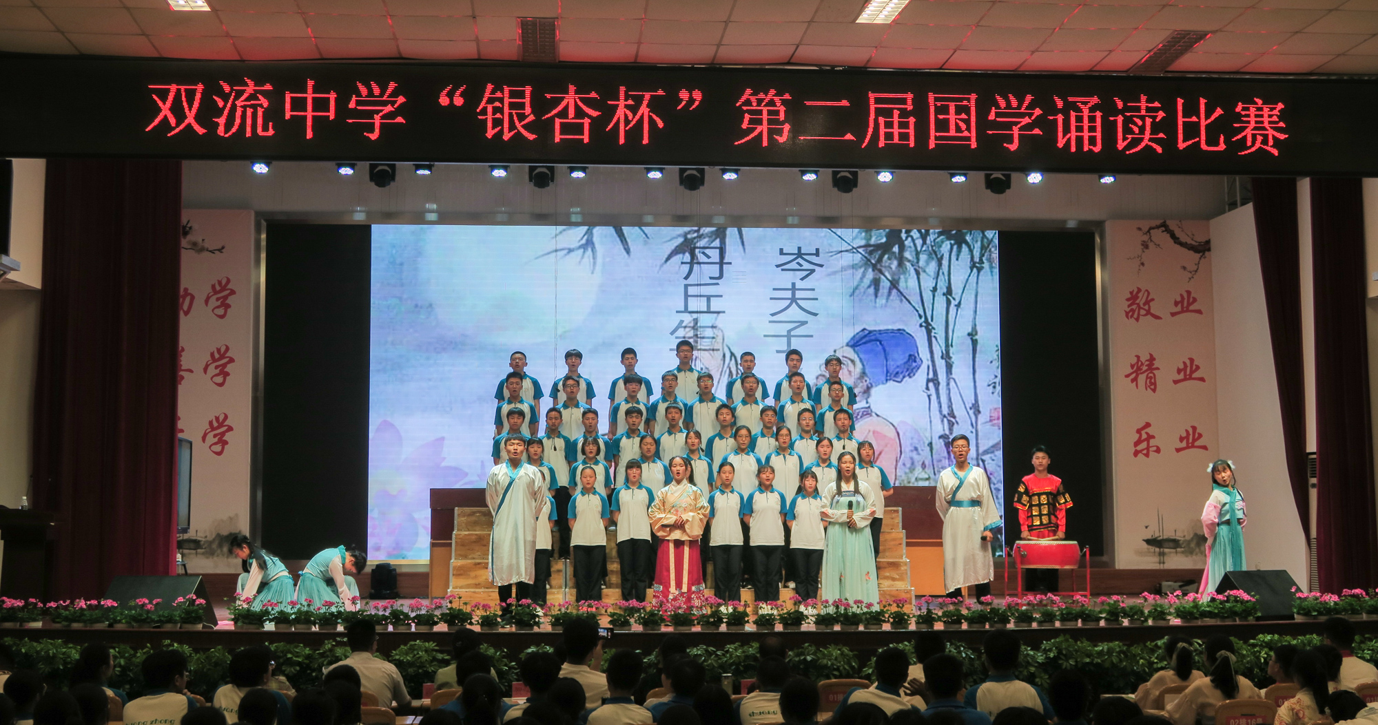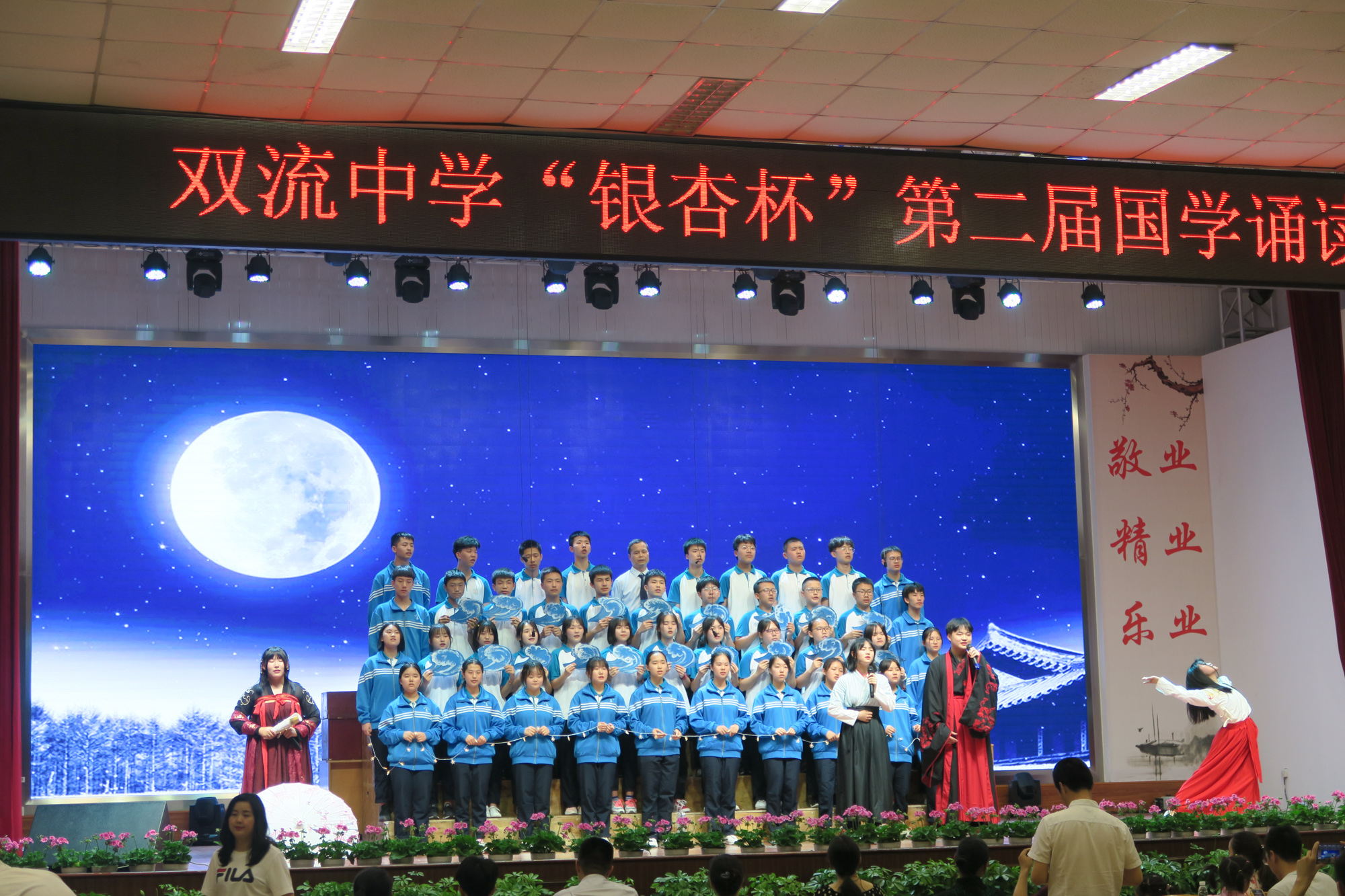 4月26日的夜晚華燈璀璨、桃李滿園,雙中學(xué)子在誦讀中濡染華夏情韻,在吟唱中弘揚(yáng)民族精魂。