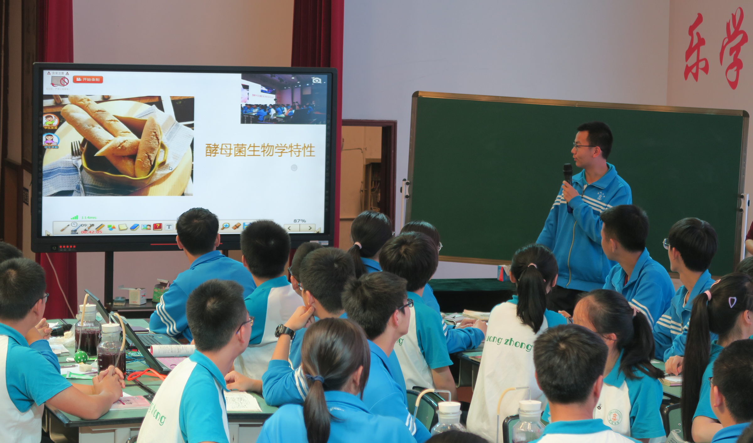 接著由雙流中學(xué)生物老師雷治練給大家?guī)砹艘惶谩栋l(fā)酵實驗探索》的展示課。本課程由雙流中學(xué)化學(xué)老師林華娟、信息技術(shù)老師賀其備擔(dān)任助教,分別負責(zé)本實驗探索過程中的化學(xué)知識分析和信息技術(shù)支持。本堂實驗展示課是雙流中學(xué)STEAM課程中多學(xué)科融合的典型,學(xué)生由發(fā)酵實驗探索出發(fā),分小組進行長期的實踐、觀察、記錄、總結(jié)和研究,從酵母菌是什么到驗證并記錄酵母菌的有氧呼吸和無氧呼吸的情況對比,最后研究海藻酸鈉溶液與酵母細胞混合,得出固定化酵母細胞與非固定化酵母細胞發(fā)酵速率相似等結(jié)論。通過實驗探索,為學(xué)生提供逼近真實、富有現(xiàn)實意義的學(xué)習(xí)情境,讓學(xué)生通過運用多學(xué)科知識和技能來解決實際問題,以利于學(xué)生高階思維與積極情感的投入,解決復(fù)雜問題,從而全面提升學(xué)生實踐、創(chuàng)新與探究能力及知識、能力與情意方面的核心素養(yǎng)。