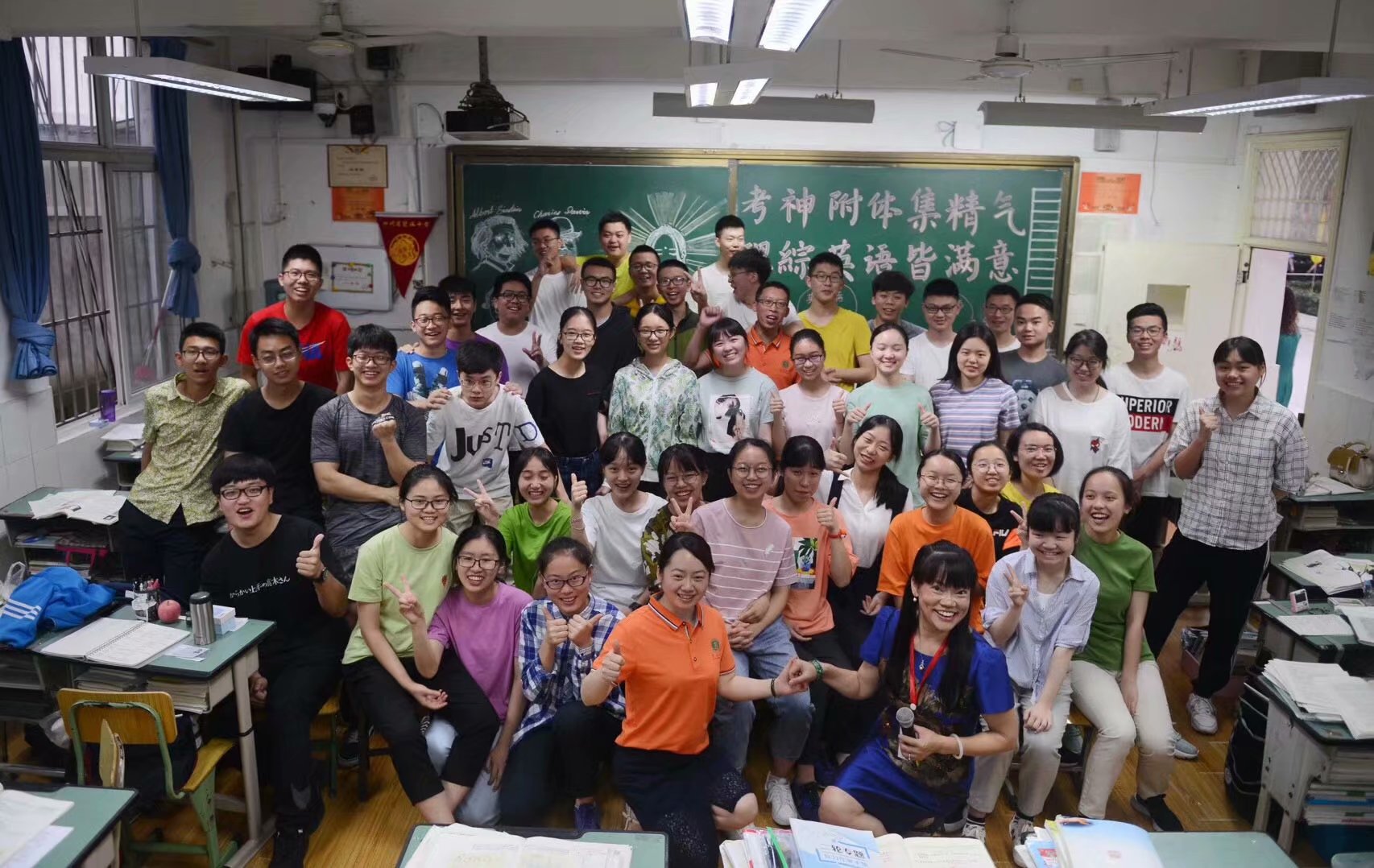 在今年剛結(jié)束的高考中,我的班級又一次帶來了驚喜。我和語文李愛英老師,數(shù)學邱國界老師,物理姚光橋老師,化學廖澤君老師,生物顏懷勛老師齊心合力,團結(jié)協(xié)作,在六月取得了驕人的成績。高2019屆1班(區(qū)優(yōu)秀班集體)全國高考班平631分,全班上重點,英語單科班級均分140。其中雙流區(qū)理科最高分文星朗700分,王瀟692分。李懿高考數(shù)學滿分150分,匡知雨高考生物滿分90分,謝杭江高考680分,其中物理滿分110分。張瑜,被空軍航空航天大學錄取,成為我國空軍第十二批女飛行學員,四川僅僅只有兩名,全國共40名。