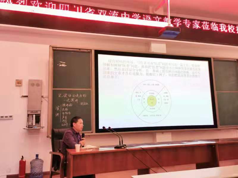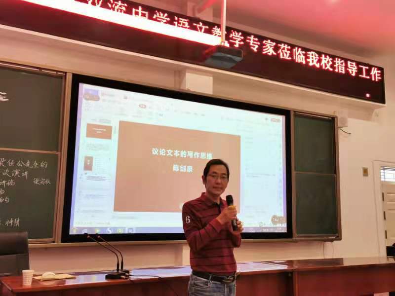 陳劍泉老師作為應(yīng)邀專家,就其國(guó)家級(jí)教育科研課題“寫作思維素養(yǎng)教學(xué)實(shí)踐研究”的重要成果之一“議論文本的寫作思維培養(yǎng)”,為大英中學(xué)的語文同仁做了專題講座。該講座圍繞“如何培養(yǎng)學(xué)生的議論文寫作思維”為大英中學(xué)的語文老師提供了眾多可借鑒、可操作、有實(shí)效的具體方法,獲得了大英中學(xué)語文同仁的高度認(rèn)可和一致好評(píng)。