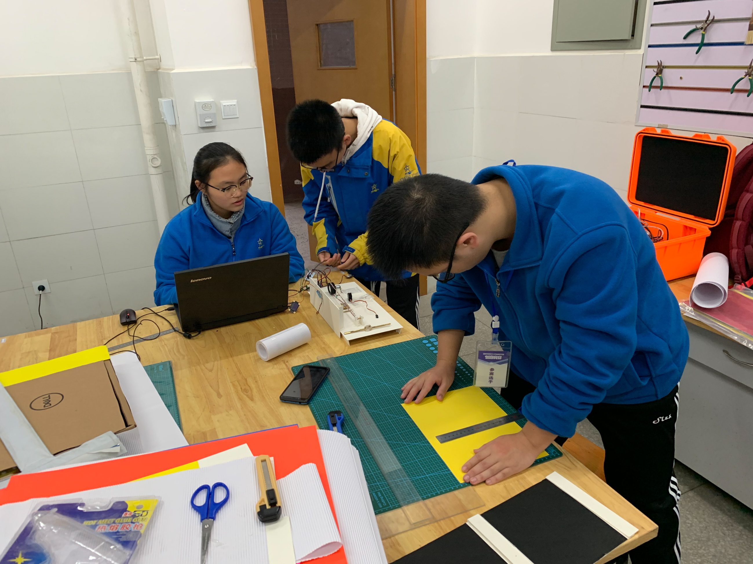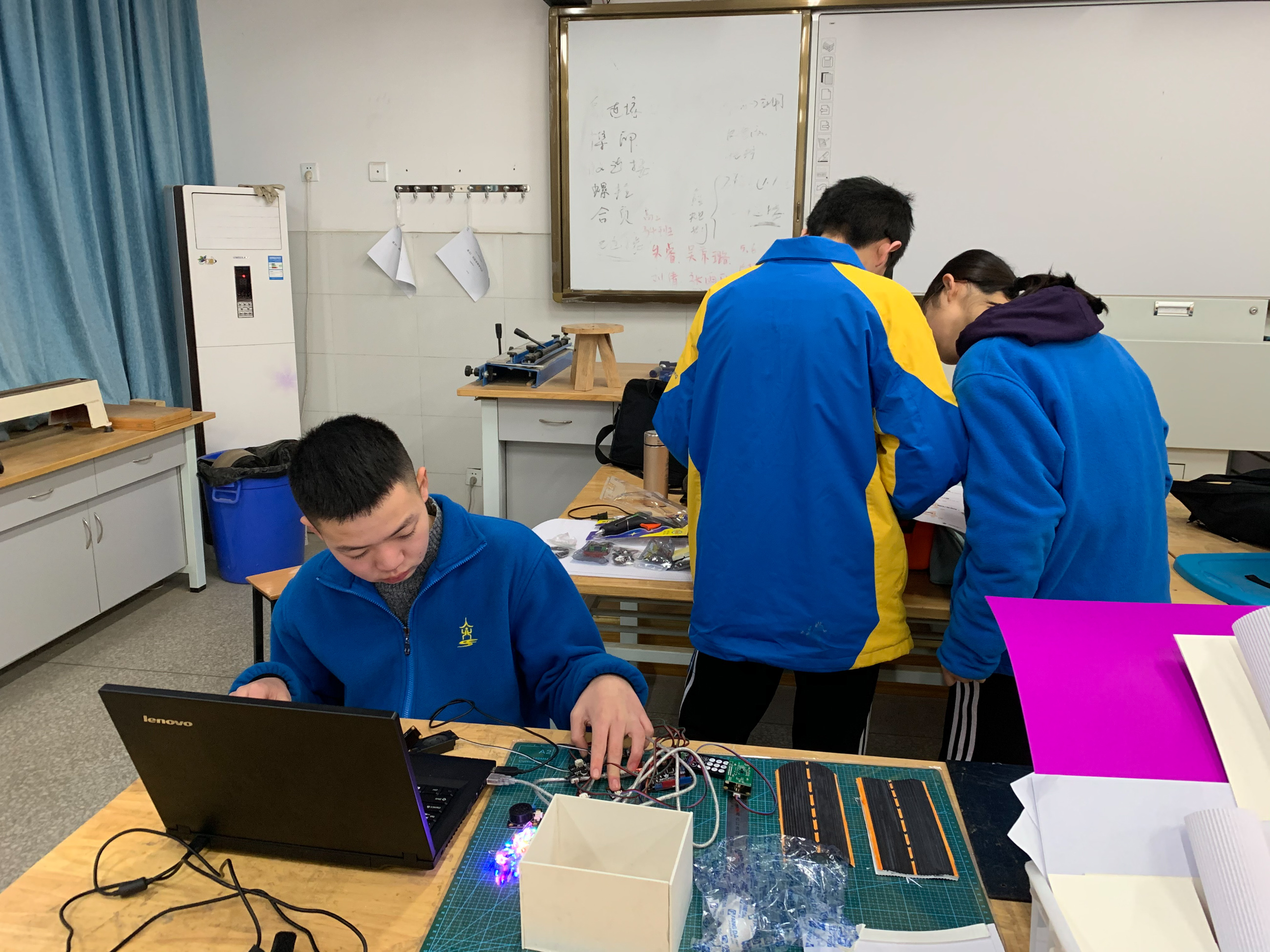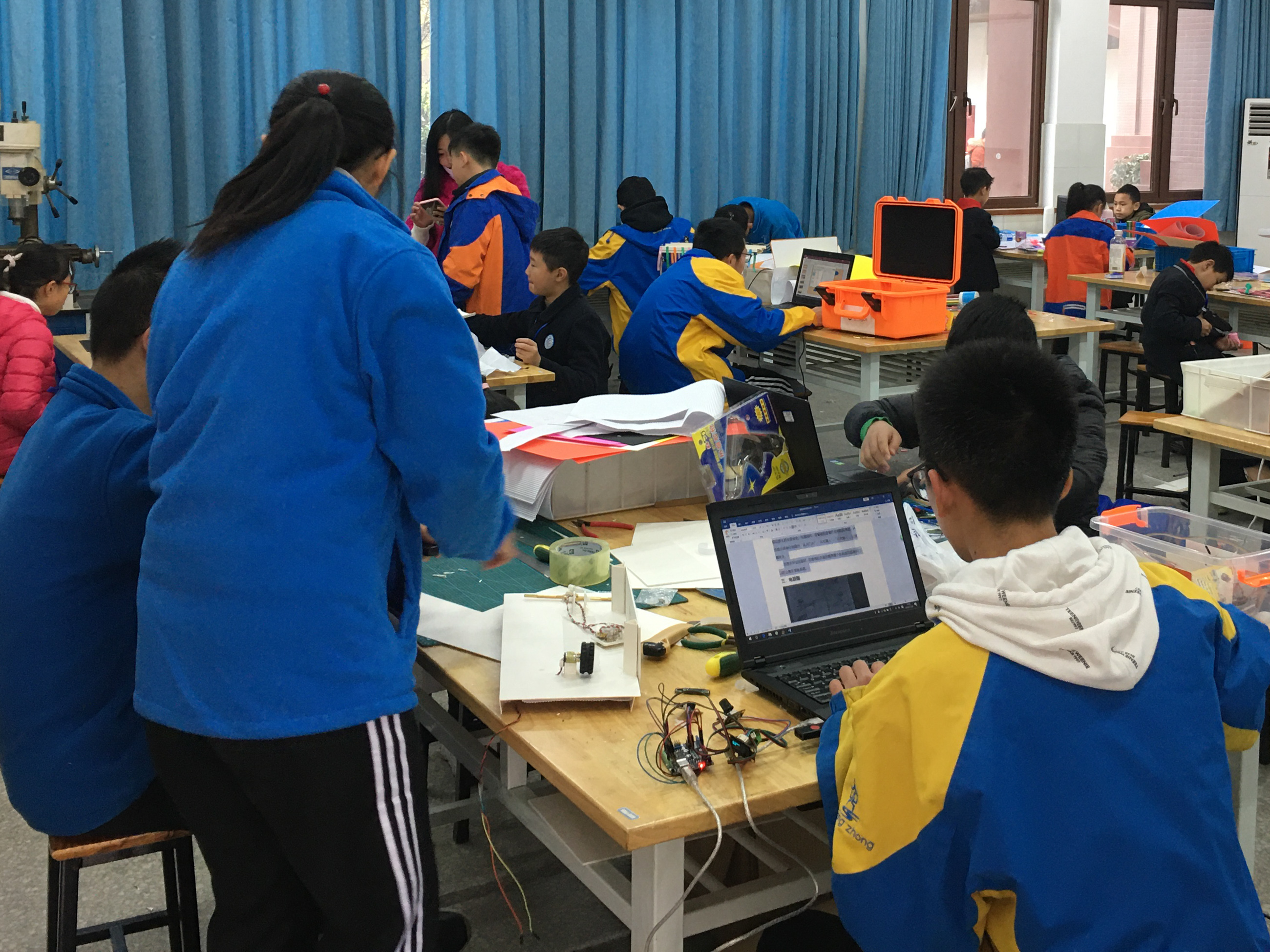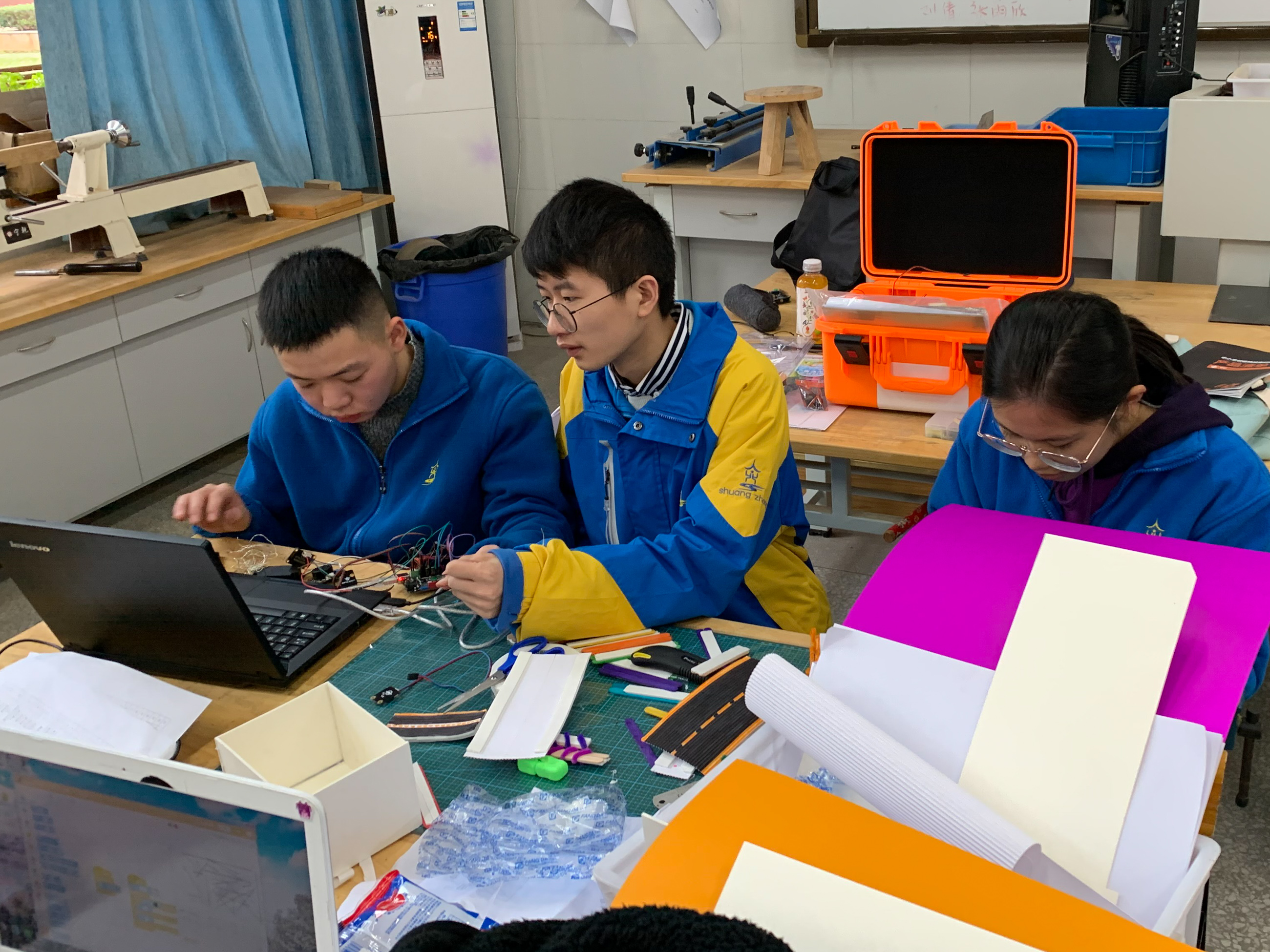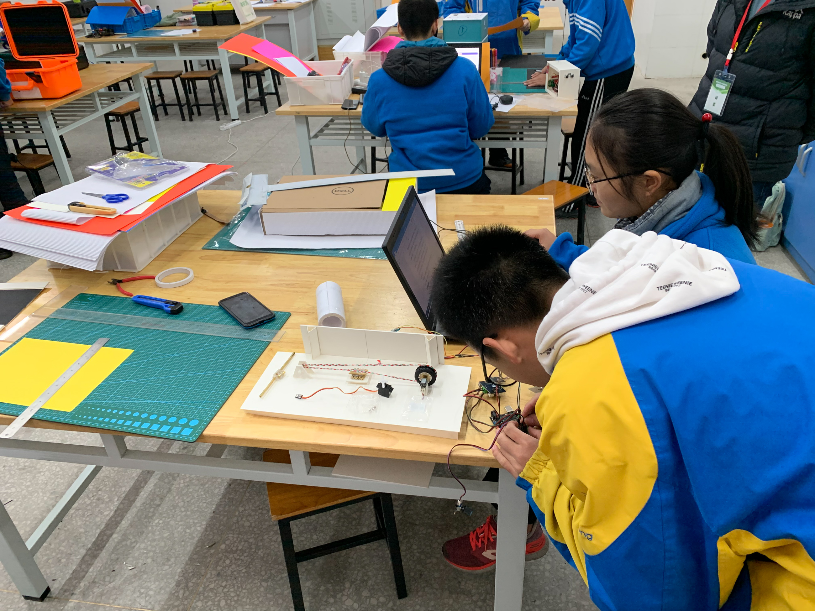本屆比賽的主題為“智能交通”,學(xué)生們在比賽中需要用各類材料結(jié)合開源硬件和編程軟件現(xiàn)場構(gòu)思、現(xiàn)場設(shè)計、現(xiàn)場搭建、現(xiàn)場測試四個環(huán)節(jié)完成一項智能作品,最后還要進行現(xiàn)場答辯。整個比賽對于學(xué)生的團隊協(xié)作分工、創(chuàng)意思考、動手操作、藝術(shù)搭建、編程及開源硬件應(yīng)用能力等多個方面提出了很高的要求。我校參賽的同學(xué)沉著應(yīng)戰(zhàn),每個小組各展其能,結(jié)合社會熱點及現(xiàn)實應(yīng)用,進行創(chuàng)意搭建,制作了作品。