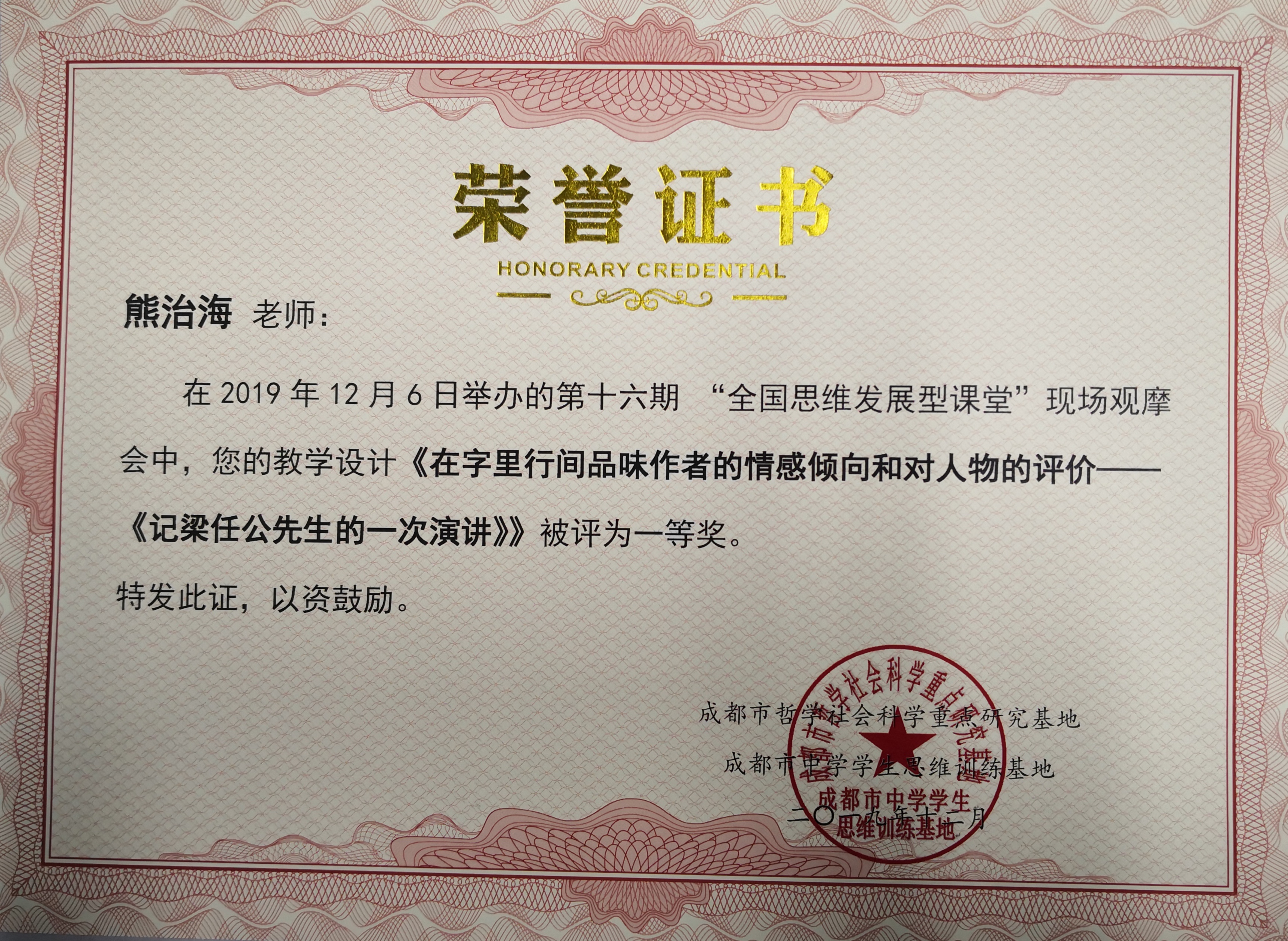 雙流中學(xué)熊治海老師的主題班會展示課《為夢想導(dǎo)航》受到一致好評,被評為一等獎。