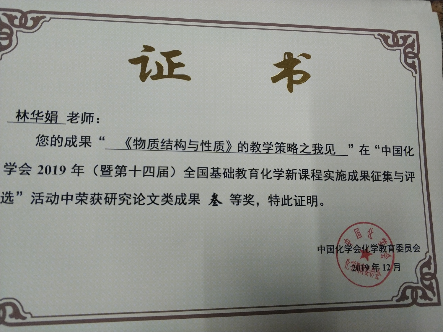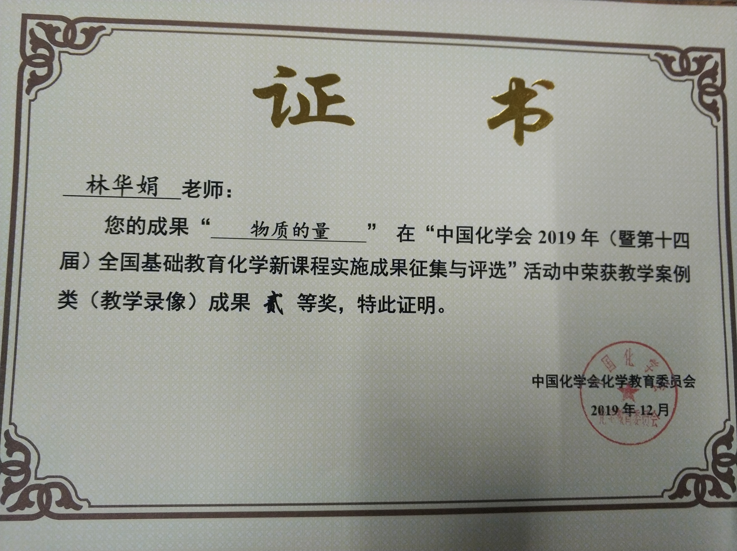 林華娟老師的獲獎證書林華娟老師的獲獎證書