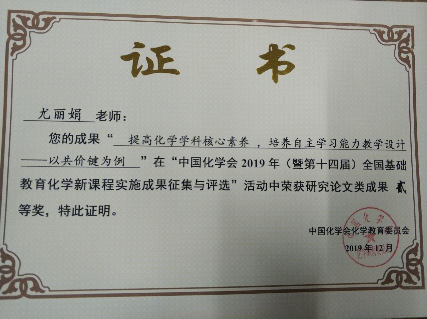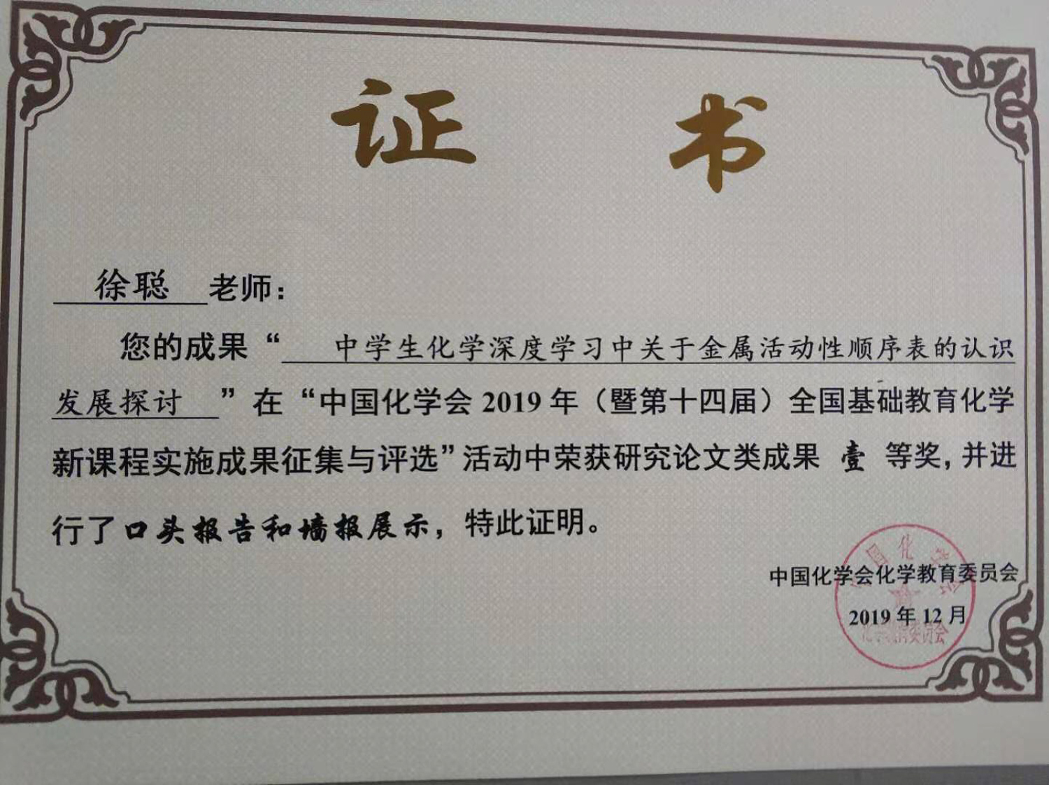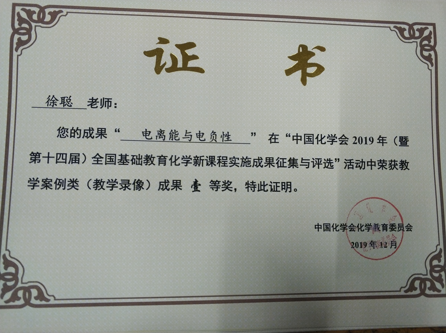 徐聰老師的獲獎證書徐聰老師的獲獎證書