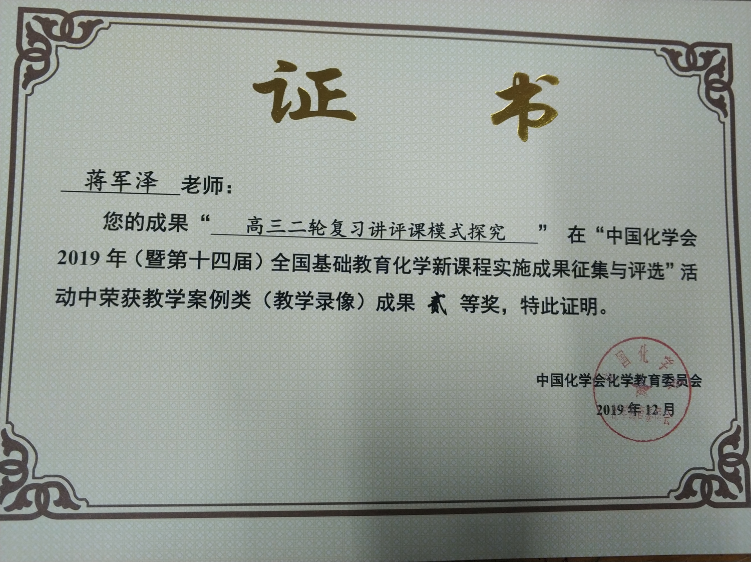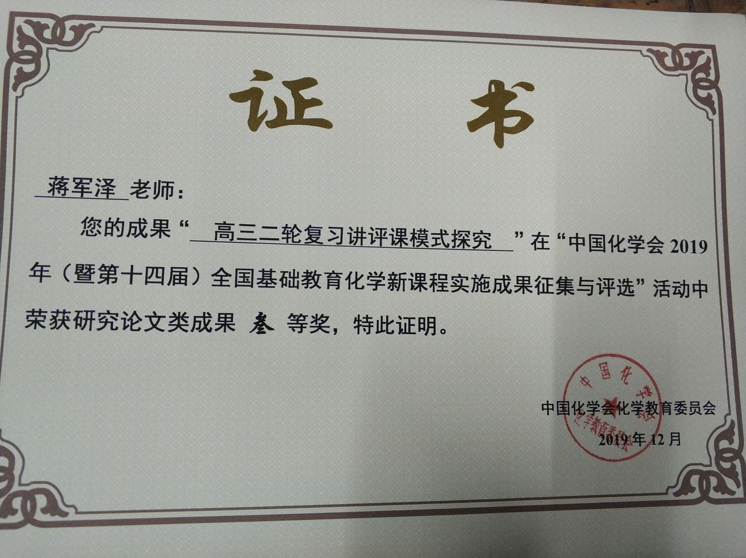 蔣軍澤老師的獲獎證書蔣軍澤老師的獲獎證書