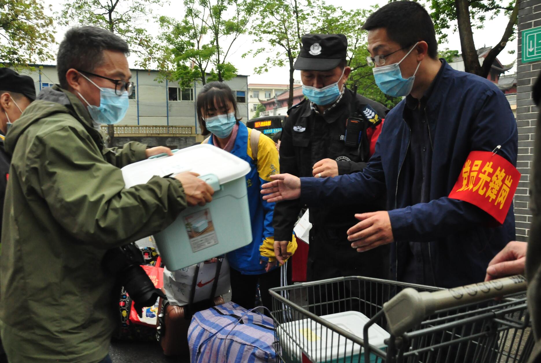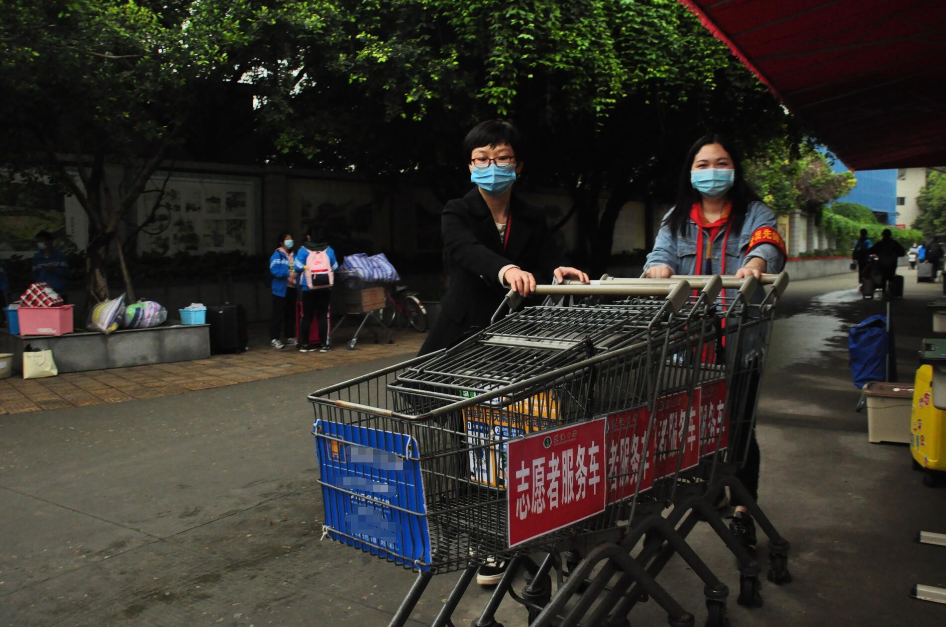 教師志愿者幫助同學(xué)搬運(yùn)行李