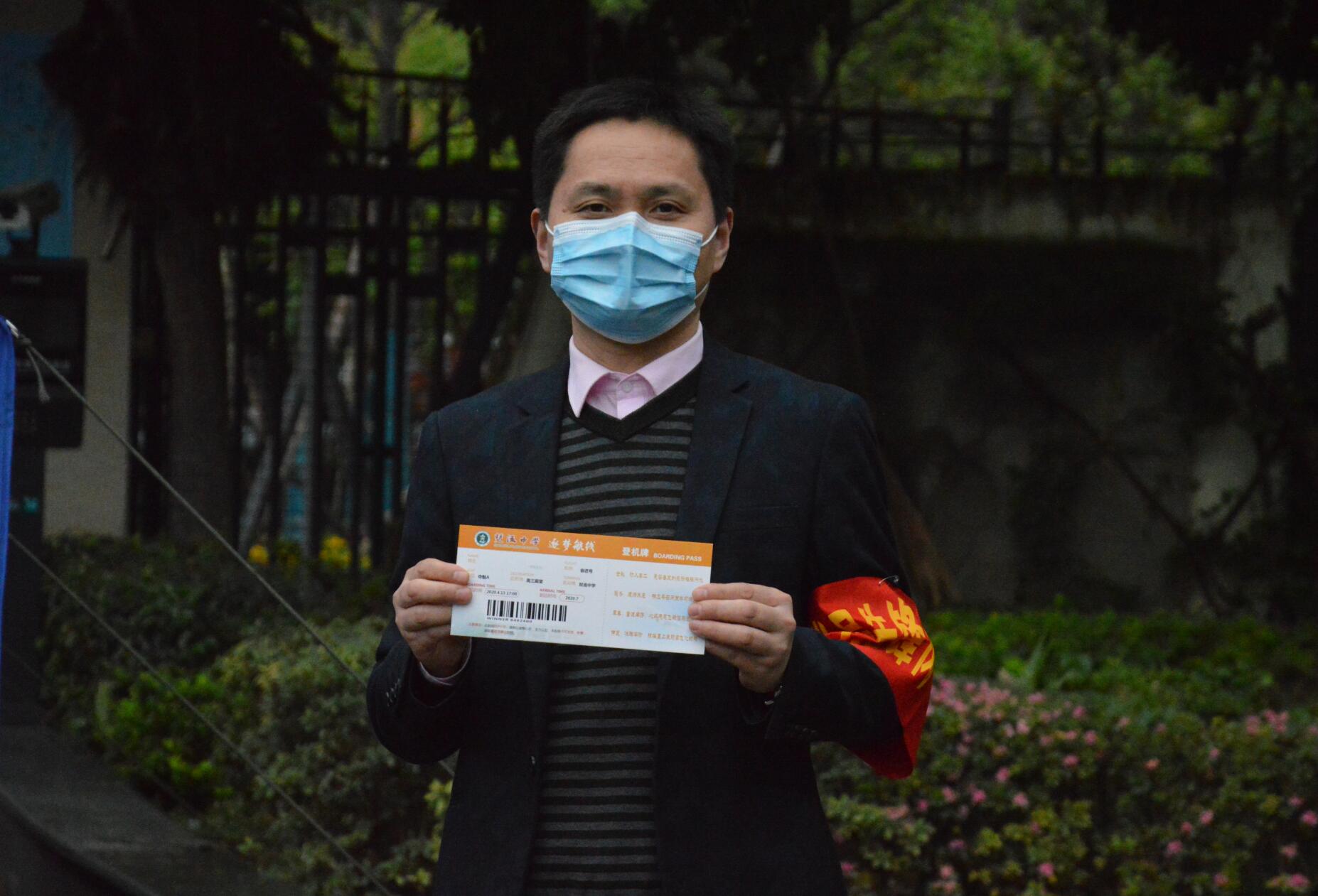 龍清明校長(zhǎng)給同學(xué)發(fā)“機(jī)票”
