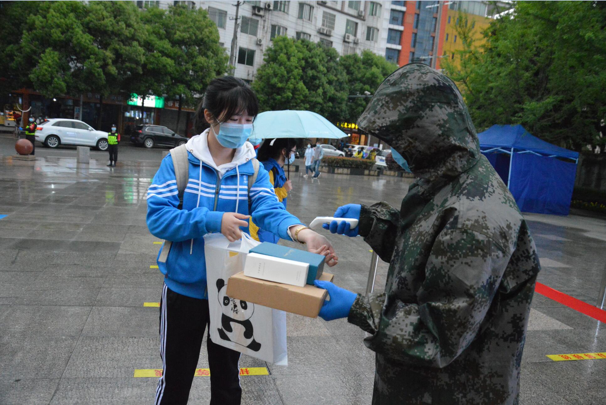 楊冰玉: 小雨纖纖風(fēng)細(xì)細(xì),今天的天氣雖然不盡人意,但同學(xué)們都懷著激動(dòng)的心情迎來返校。由于疫情原因,此次的返校體驗(yàn)是十分特別的。在返校前幾天,我們就收到了關(guān)于復(fù)學(xué)的詳盡規(guī)劃。年級(jí)上的不同班級(jí)分批次進(jìn)入學(xué)校,并且嚴(yán)格控制除學(xué)生外的人員進(jìn)入,住校生的行李將會(huì)由職工人員幫忙帶入。在校門口的時(shí)候,同學(xué)們依次排隊(duì)進(jìn)入,一個(gè)一個(gè)量體溫。我一進(jìn)校門就有學(xué)校的老師幫忙拿行李,因?yàn)槔蠋熀吐毠兊膸椭?,我很快就到達(dá)寢室,將東西收拾好。這一次返校,因?yàn)閷W(xué)校的有序組織,老師同學(xué)們的幫助,整個(gè)過程高效有序又十分溫暖!