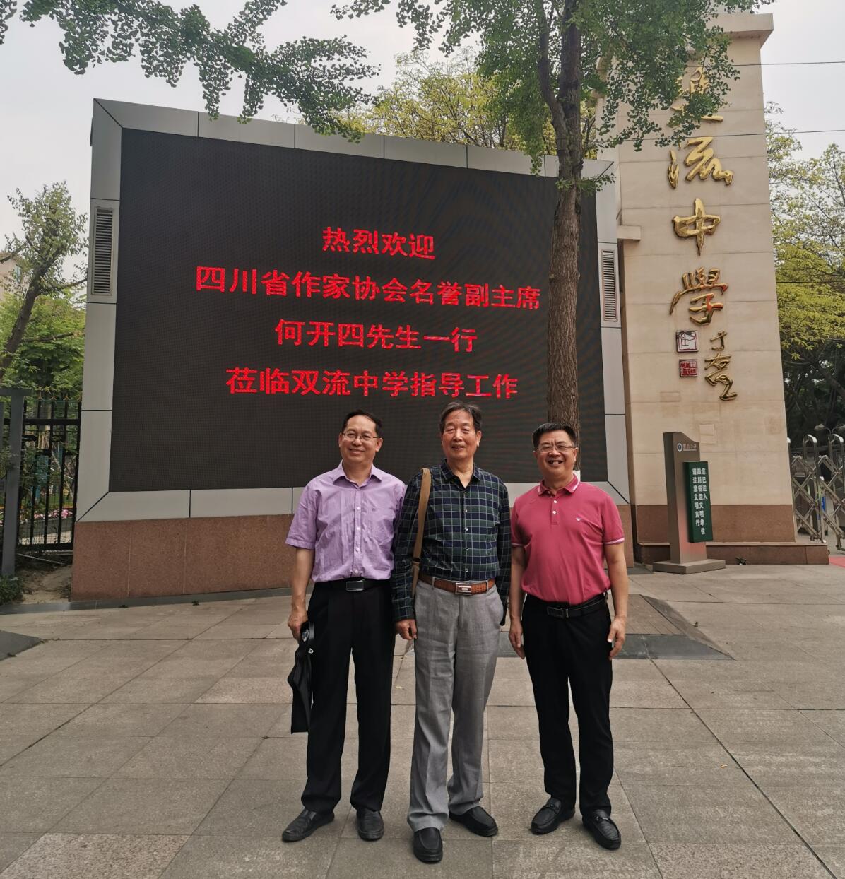2020513日,四川省作家協(xié)會名譽(yù)副主席何開四先生一行赴雙流中學(xué)舉行勵志報(bào)告會推廣文學(xué)。雙流中學(xué)校長龍清明等相關(guān)領(lǐng)導(dǎo)熱情接待了何主席一行,并對他們的到來表示熱烈歡迎。