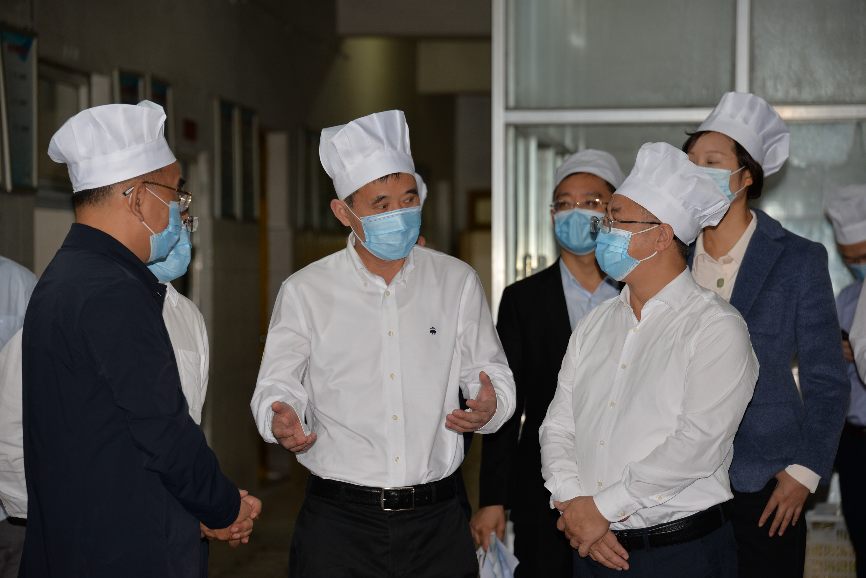 隨后,李主席一行對(duì)雙中食堂的粗加工間、操作間、售賣間、溯源系統(tǒng)、留樣柜等一一進(jìn)行嚴(yán)格檢查,對(duì)雙中食堂嚴(yán)格的管理及疫情期間的錯(cuò)時(shí)錯(cuò)峰就餐等措施表示贊許。李主席強(qiáng)調(diào),食品安全是學(xué)校工作的重中之重,學(xué)校一定要嚴(yán)格把控食品安全,在錯(cuò)峰就餐的情況下應(yīng)保證學(xué)生飯菜的供應(yīng),讓每一位學(xué)生都能吃到營(yíng)養(yǎng)充足、熱氣騰騰的飯菜。在這一點(diǎn)上,李主席肯定了雙中做出的努力。