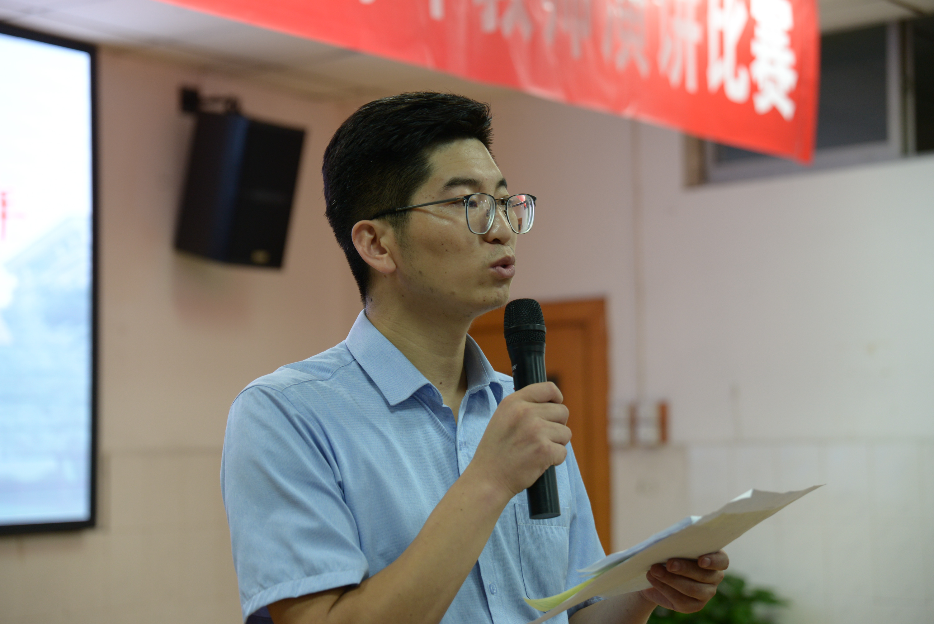 比賽正式開始前,向書記圍繞“熱愛,激情,學習”三個關鍵詞講述了他對教育的認識與看法,并表達了對青年老師的殷切期望。主持人龐波老師簡單介紹評分標準和此次比賽評委后,比賽正式開始。