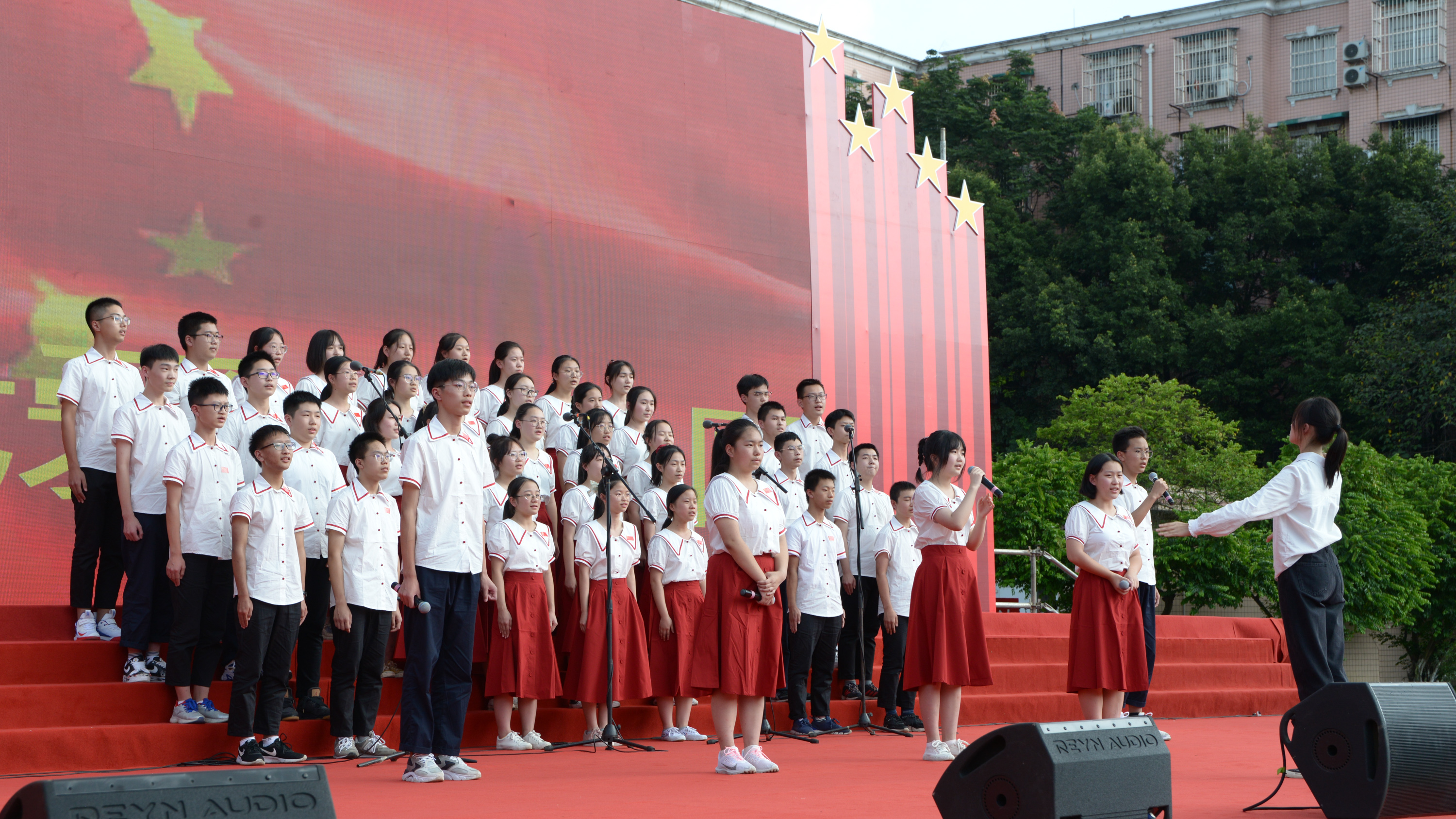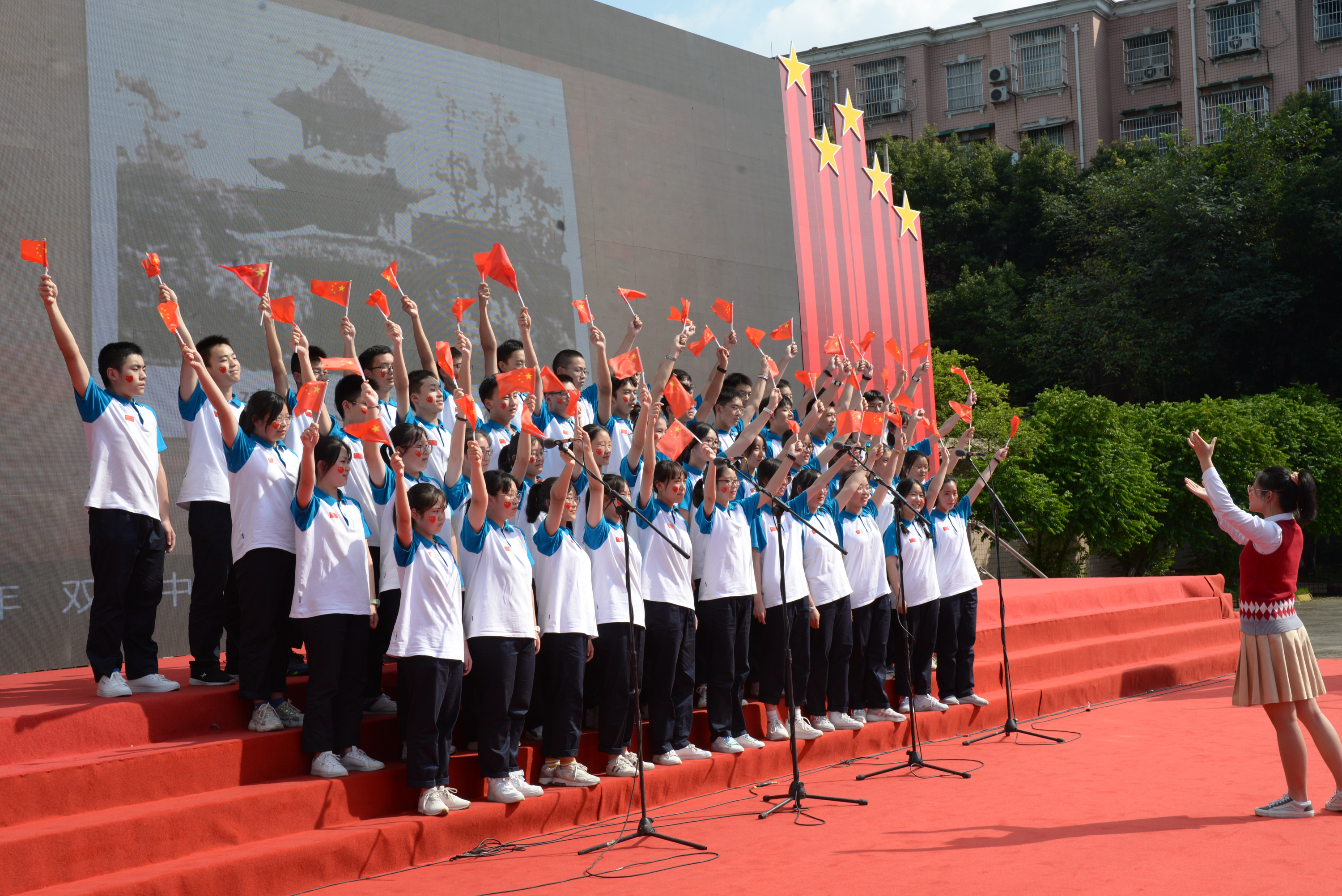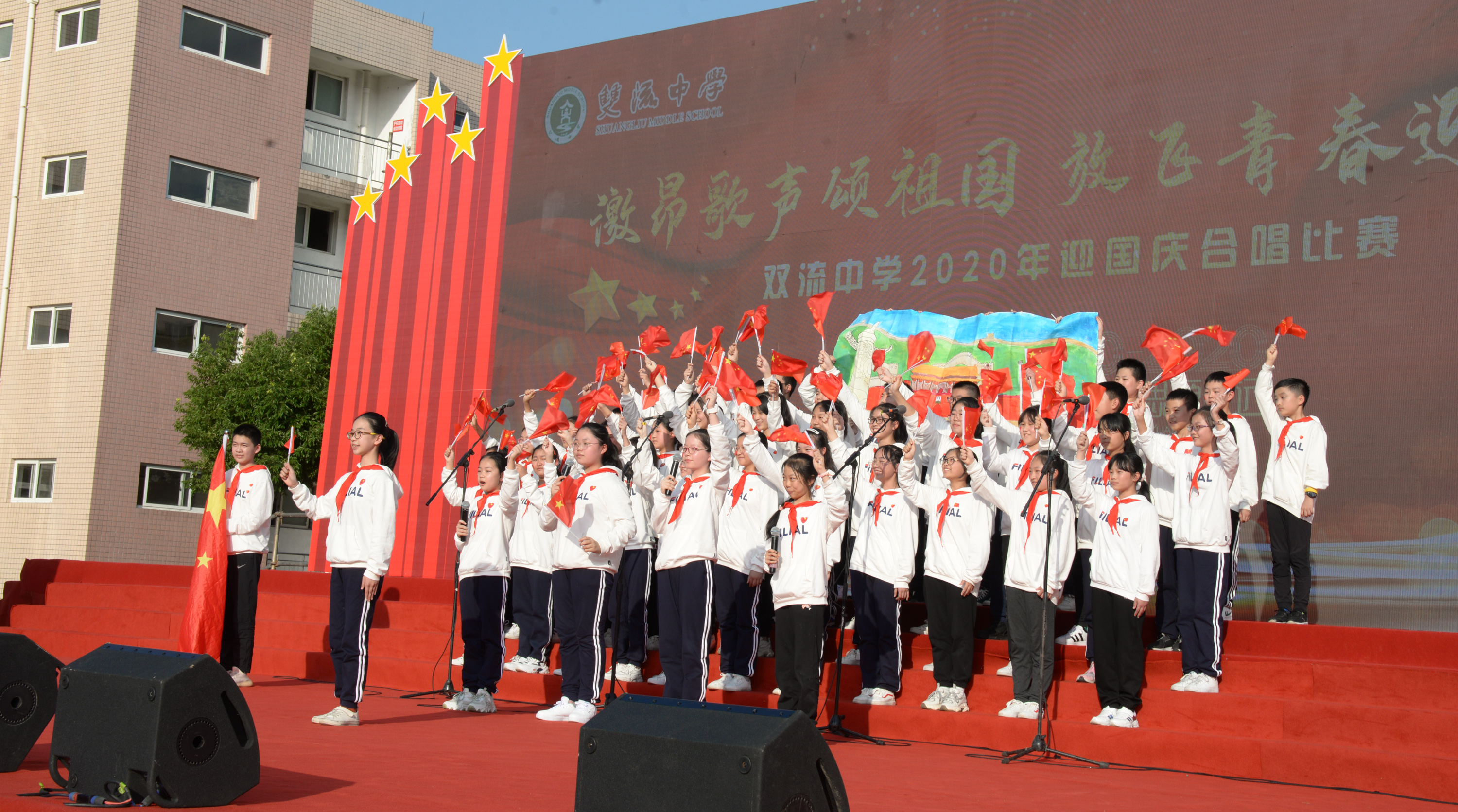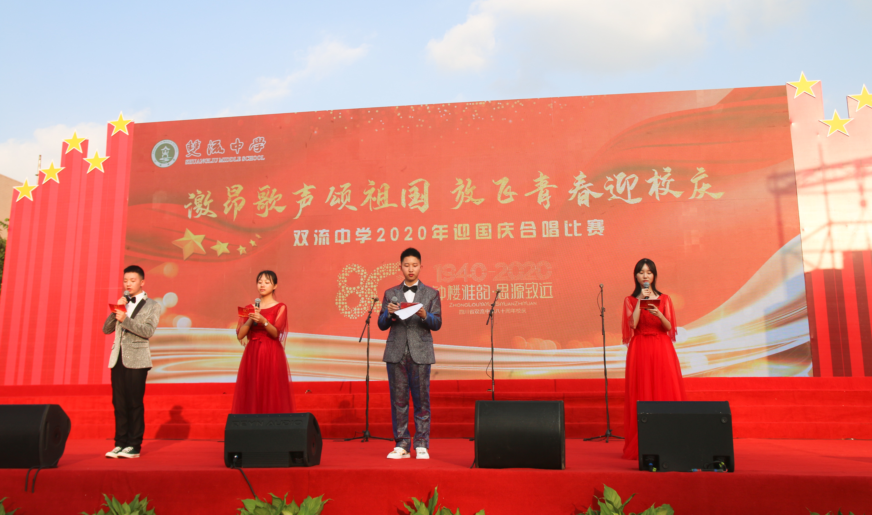 2020年9月29日,為慶祝中華人民共和國(guó)成立71周年、雙流中學(xué)建校80周年,雙流中學(xué)展開以“激昂歌聲頌祖國(guó),放飛青春迎校慶”為主題的紅歌合唱比賽,高一年級(jí)和初一年級(jí)的同學(xué)們用激昂的歌聲共同慶祝祖國(guó)與母校的生日。