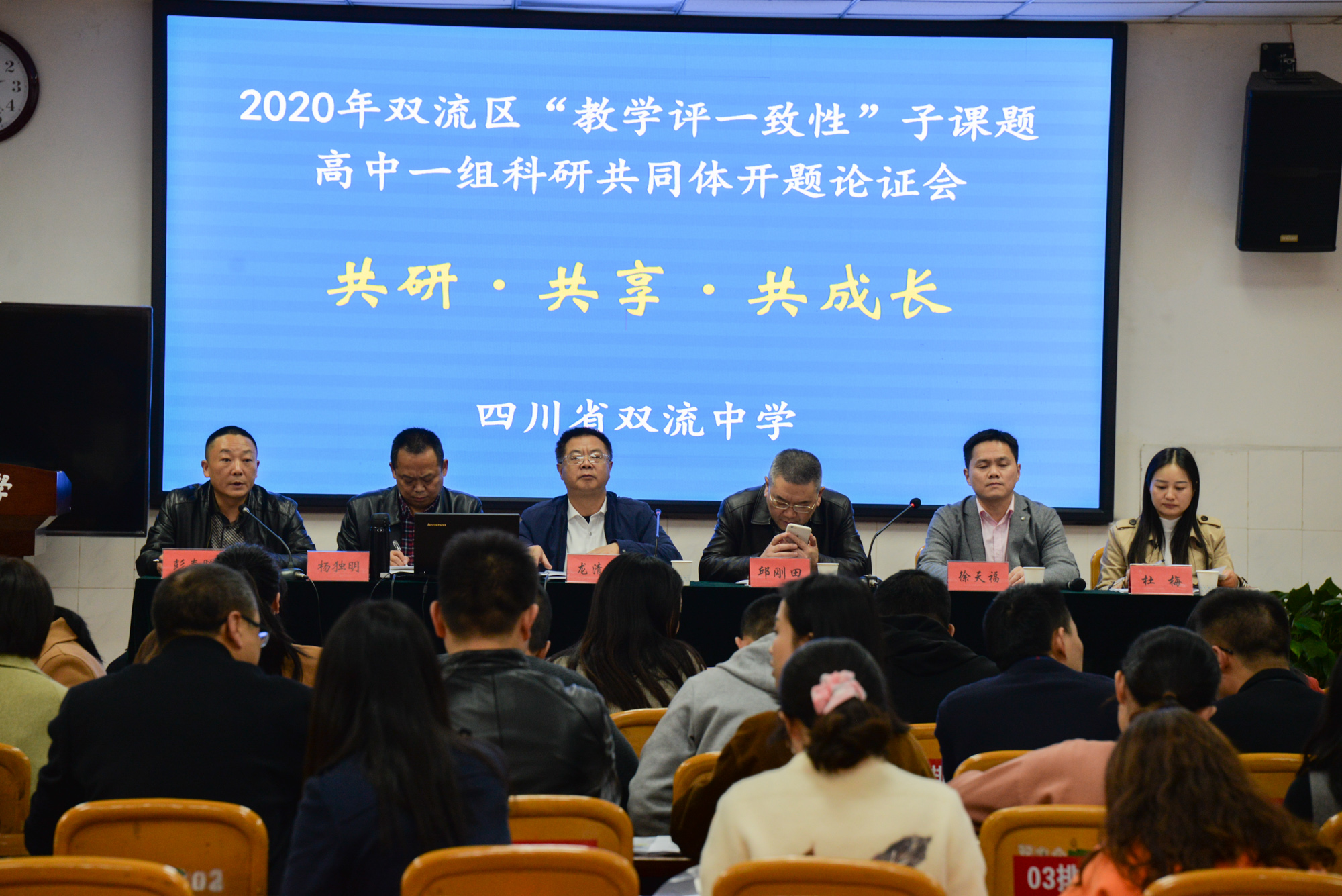 2020年10月29日下午,雙流區(qū)“教學(xué)評一致性”子課題高中一組科研共同體成員齊聚雙流中學(xué),開展了高中一組科研共同體的第三次研討活動?;顒又黝}為“開題論證會”。本次活動由雙流中學(xué)研培處主任彭春暉主持,課題指導(dǎo)聯(lián)系人、區(qū)教科院院長邱剛田,區(qū)教科院教育改革研究中心研究員楊獨明,區(qū)教科院政治教研員杜梅老師蒞臨指導(dǎo)工作,雙流中學(xué)校長龍清明、雙流中學(xué)副校長徐天福、永安中學(xué)研培處主任祝君及六個課題負責(zé)人及主研人員共60余人參會。