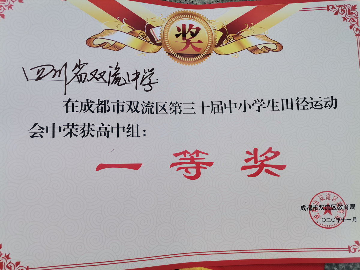由成都市雙流區(qū)教育局主辦的2020年成都市雙流區(qū)第三十屆中小學生田徑運動會暨第十五屆集體項目運動會于2020年11月24日至26日,在成都市雙流藝體中學舉行,來自全區(qū)60所中小學,共5346名運動員參加了本次比賽。我校田徑運動員經(jīng)過三天的激烈角逐,在男子跳高、110米欄、3000米、鉛球、鐵餅,女子400米、跳遠、鉛球、鐵餅獲得9個冠軍,男子跳高項目中祝宇桐以1米84,女子鉛球項目中劉鑫琪以11米54的成績打破雙流區(qū)高中生最高記錄。同時雙流中學以團體總分第一383分獲得2020年成都市雙流區(qū)第三十屆田徑運動會團體一等獎和優(yōu)秀組織獎。