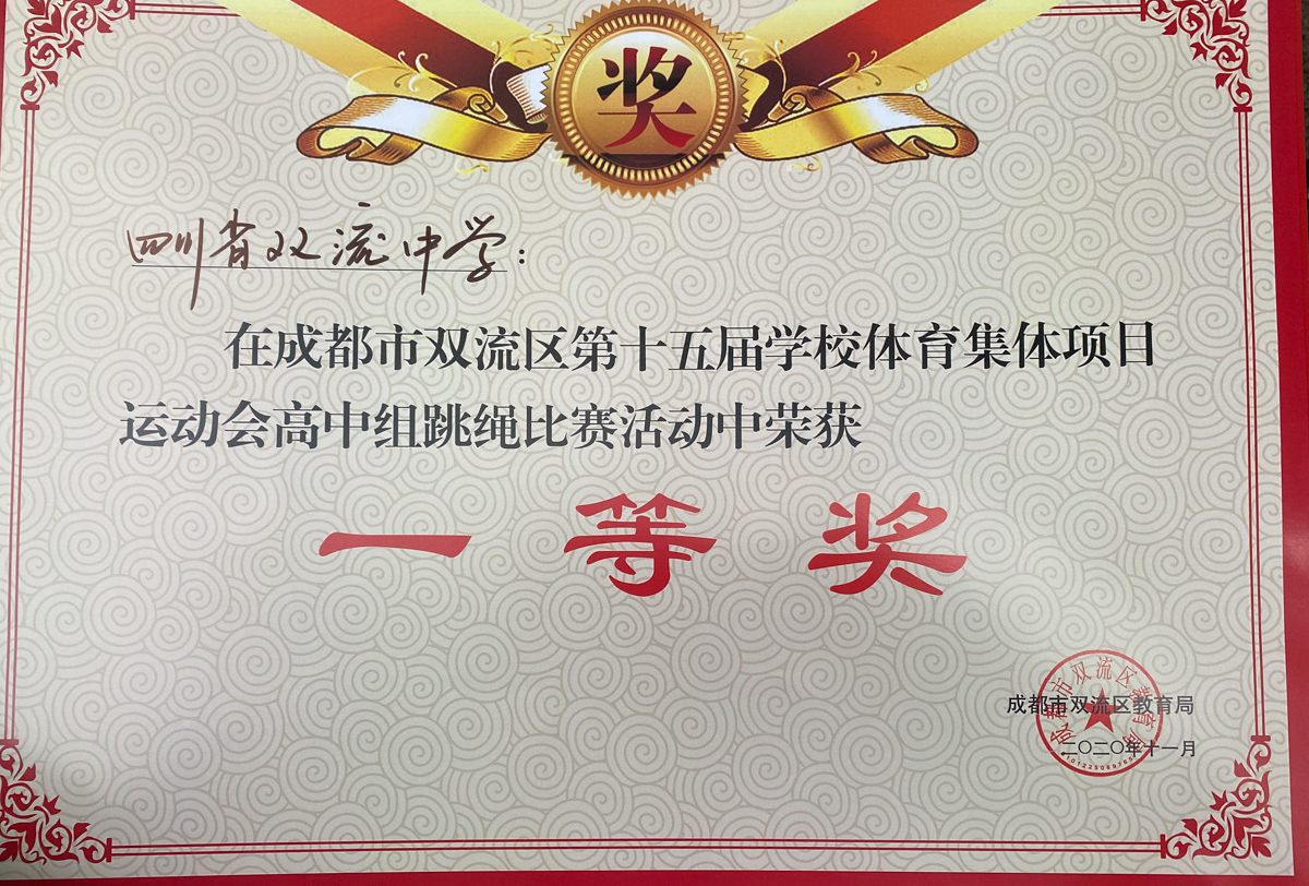 在集體項目運動會中我校學生在克服缺乏場地、訓練時間不足的同時,雙中學子頑強拼搏,最終在集體跳繩、迎面接力比賽中獲得一等獎,足球技巧挑戰(zhàn)、籃球技巧挑戰(zhàn)賽二等獎。