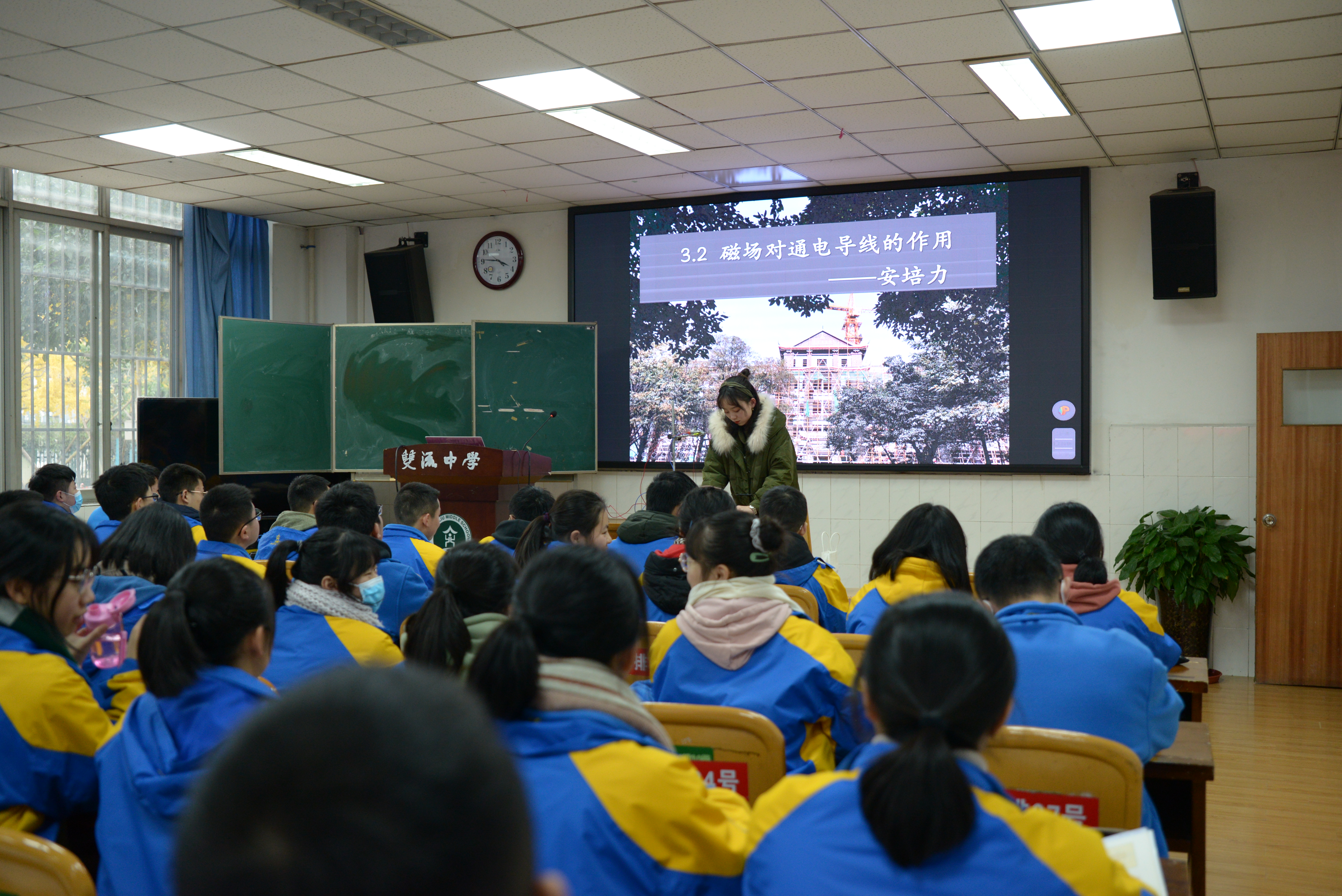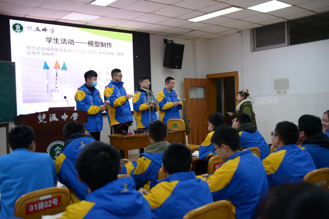 128日上午三、四節(jié)課及下午第三節(jié)課,物理組的三位老師進(jìn)行了課堂展示,雙流區(qū)高中物理教研員騰剛、雙流中學(xué)校長(zhǎng)龍清明蒞臨現(xiàn)場(chǎng)進(jìn)行聽(tīng)課,王道俊、黎國(guó)勝、聶剛老師擔(dān)任評(píng)委。