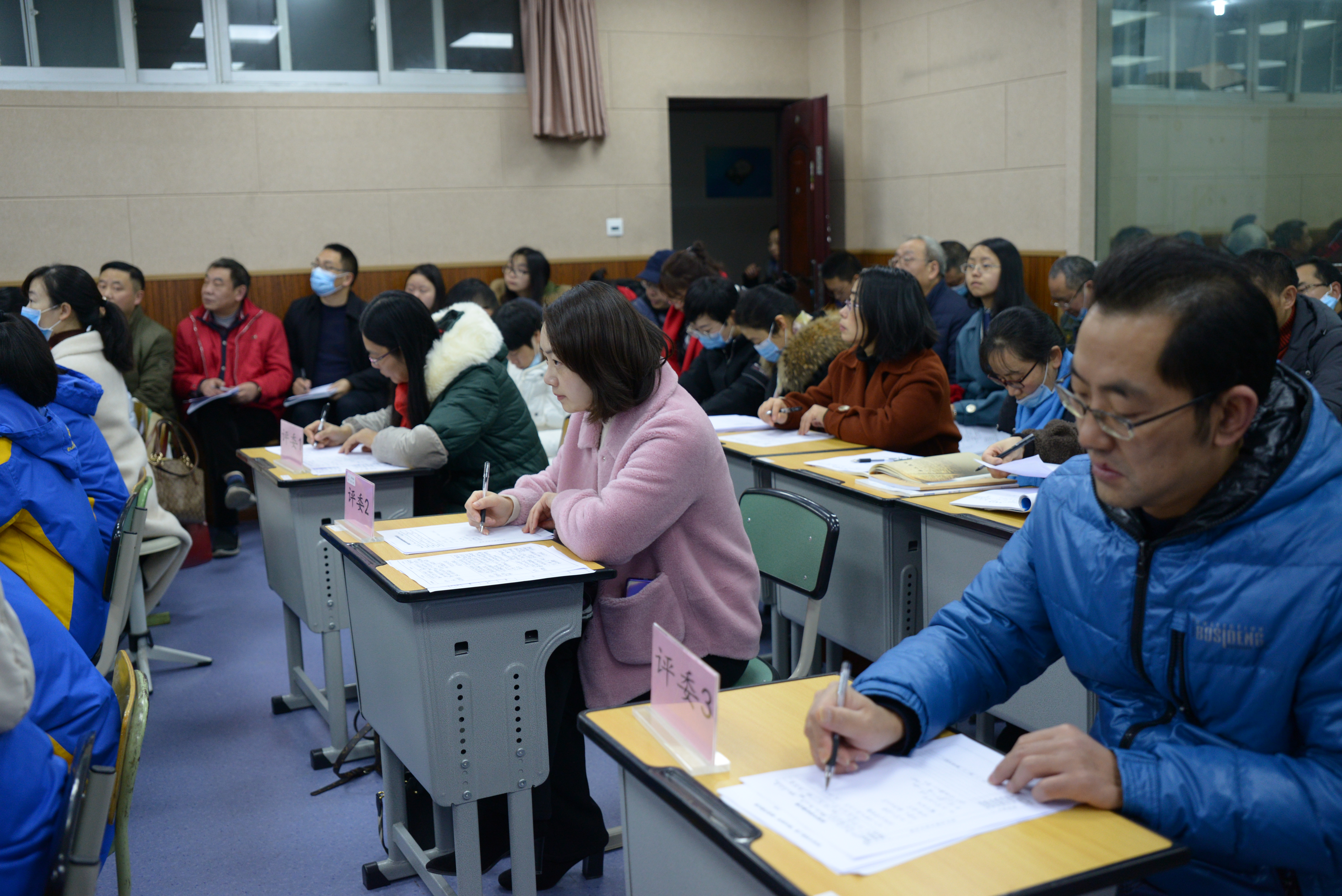 2020年12月10日高中組語(yǔ)文學(xué)科的比賽如期舉行。三位新進(jìn)教師同臺(tái)競(jìng)技,各顯其能,各得其妙。(圖為語(yǔ)文學(xué)科的評(píng)委老師及聽(tīng)課教師)