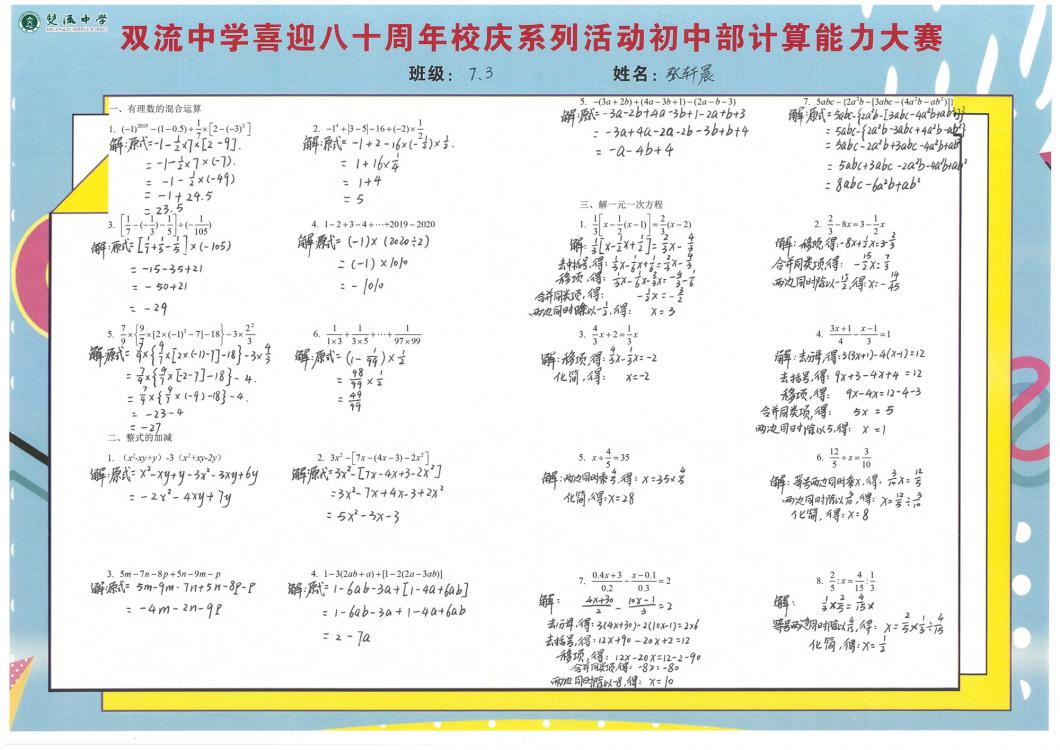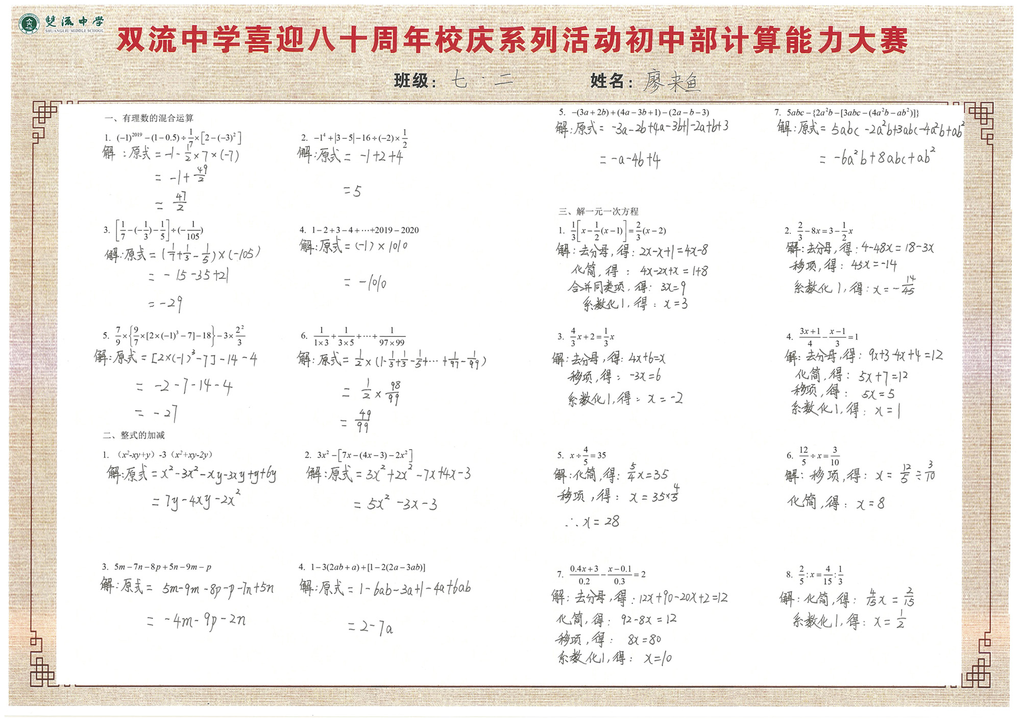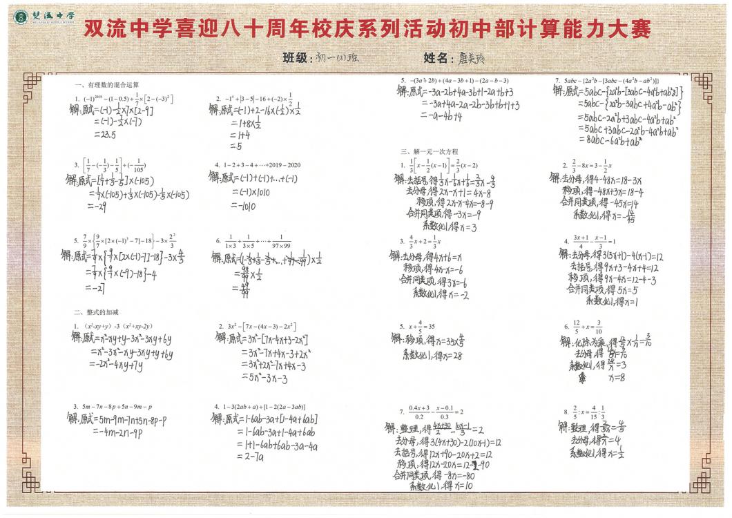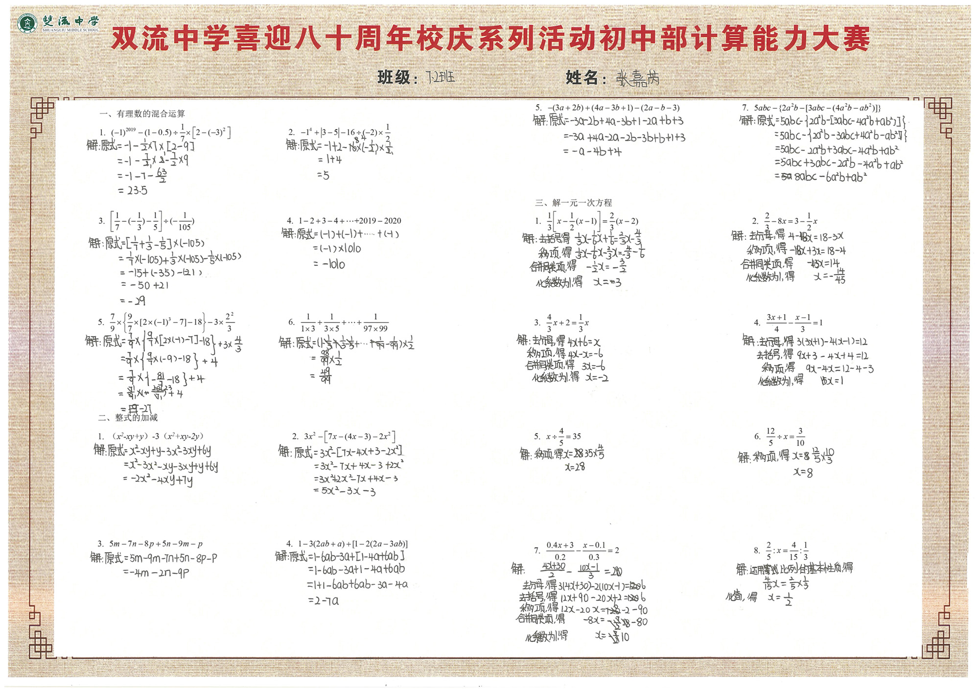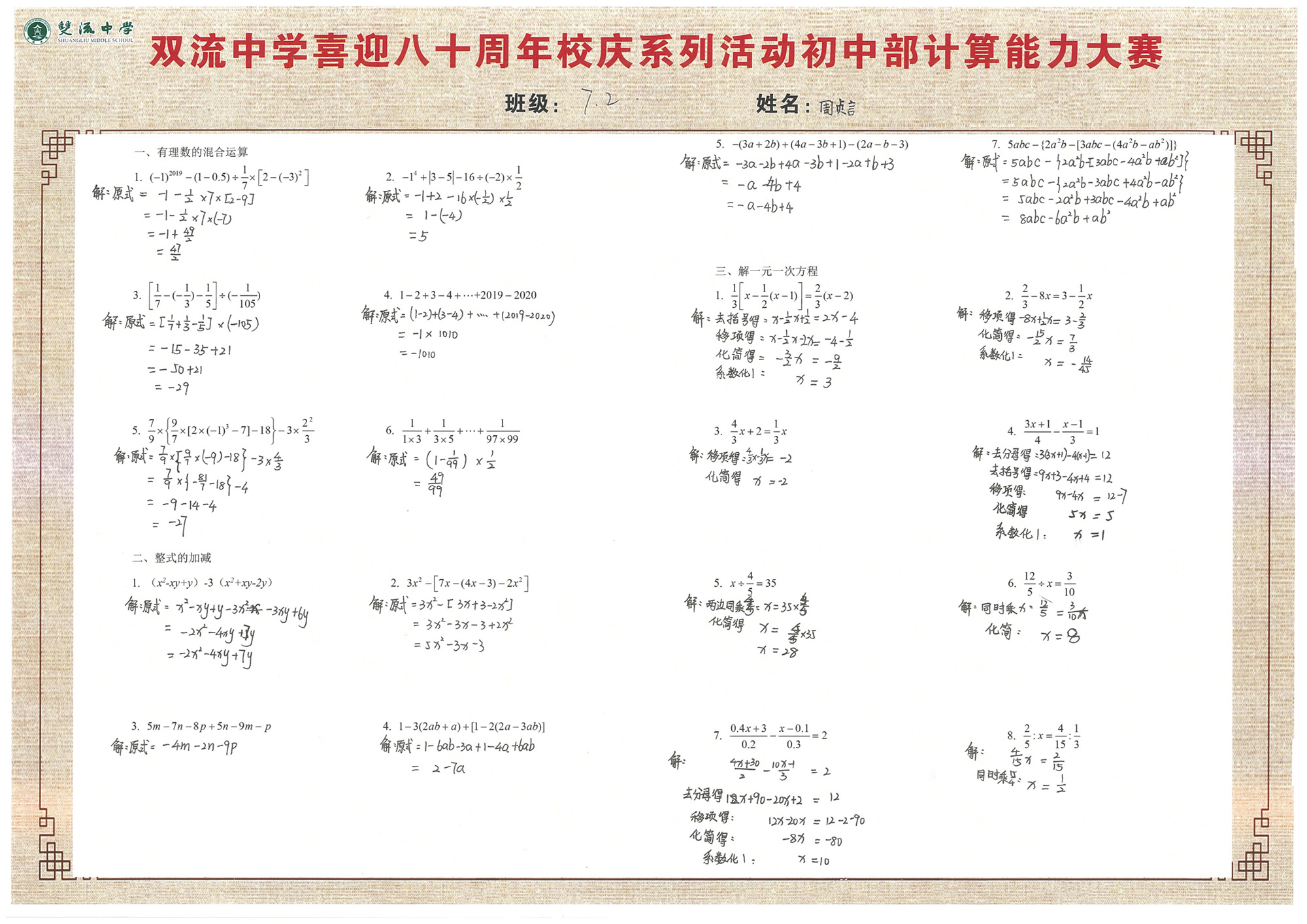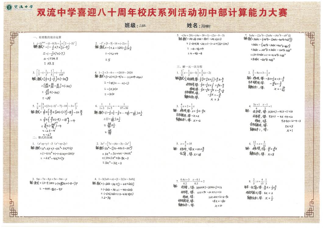 ——雙流中學(xué)初中部數(shù)學(xué)計算大賽